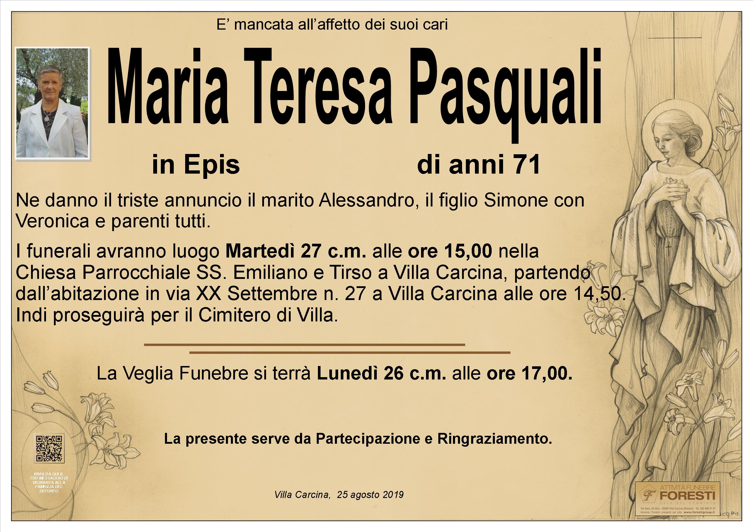 I FUNERALI AVRANNO LUOGO NELLA CHIESA PARROCCHIALE SS. EMILIANO E TIRSO A VILLA CARCINA MARTEDI' 27 C.M. ALLE ORE 15,00.