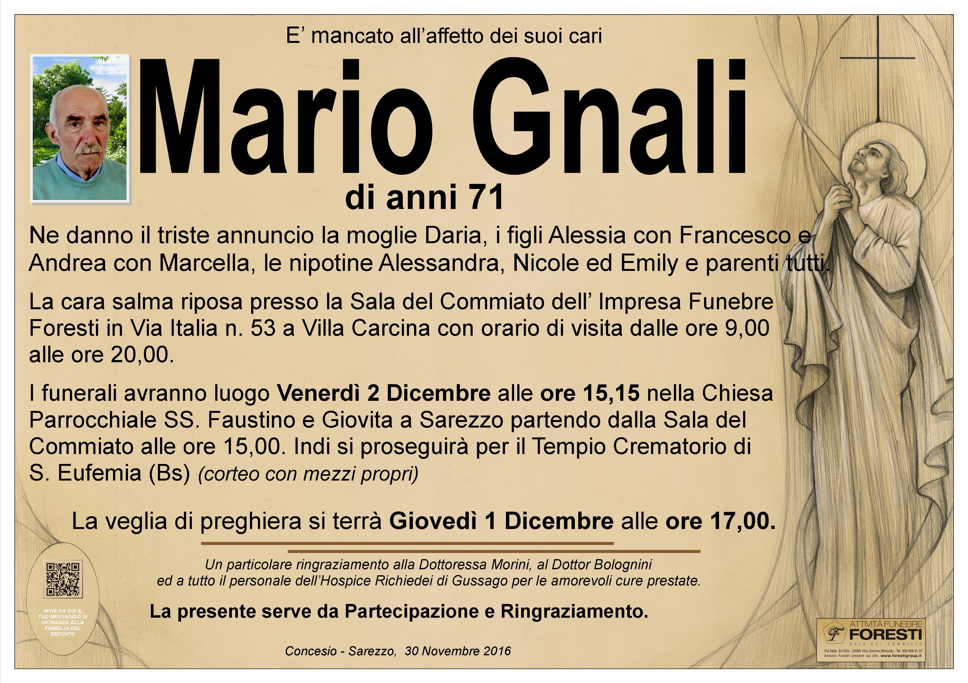 I FUNERALI VERRANNO SVOLTI VENERDI 2 DICEMBRE ALLE ORE 15.15 NELLA CHIESA PARROCCHIALE SS. FAUSTINO E GIOVITA, PARTENDO DALLA SALA DEL COMMIATO ALLE ORE 15.00.