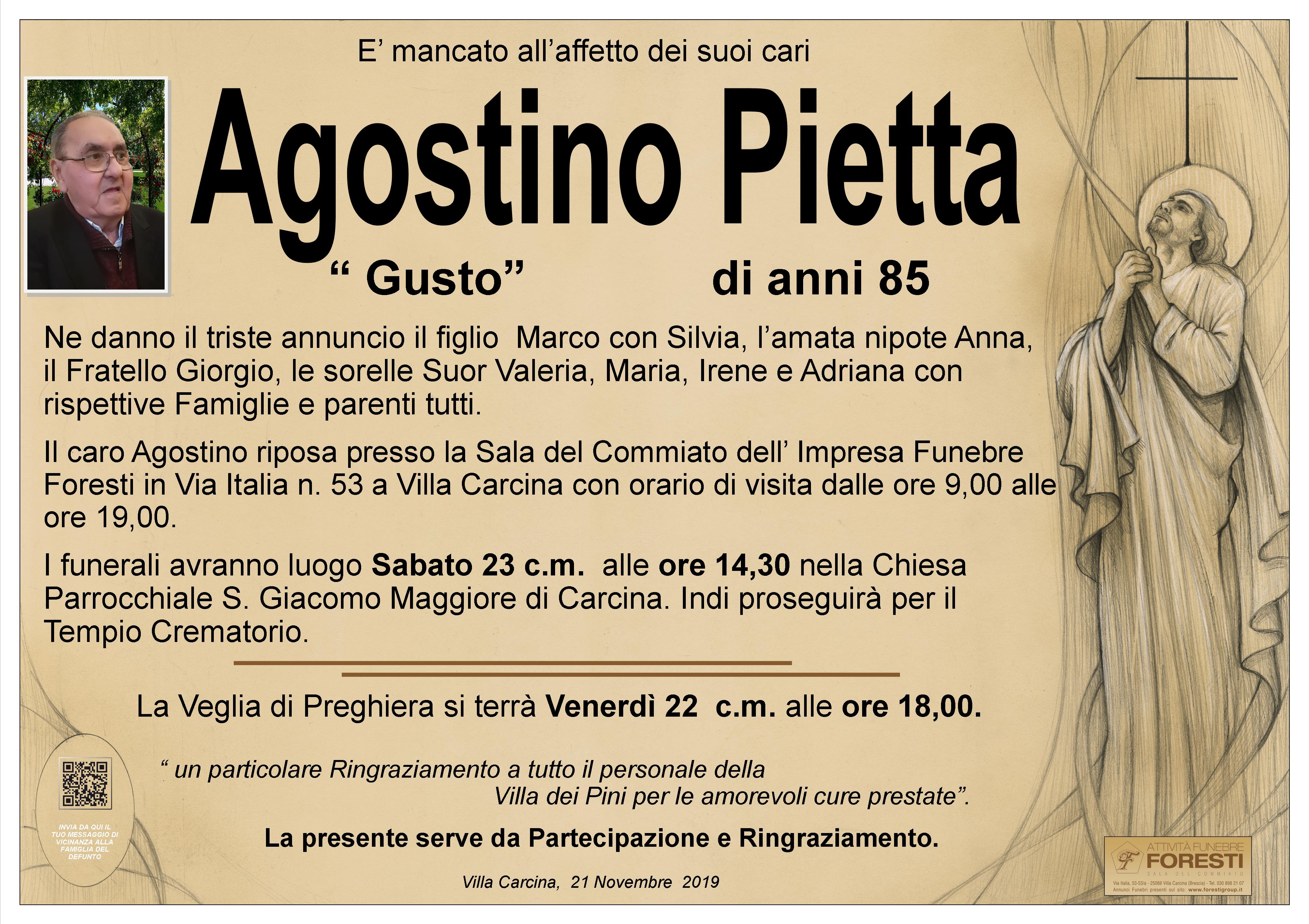 IL CARO " GUSTO" RIPOSA PRESSO LA SALA DEL COMMIATO CON ORARIO DI VISITA 09.00 / 19.00
