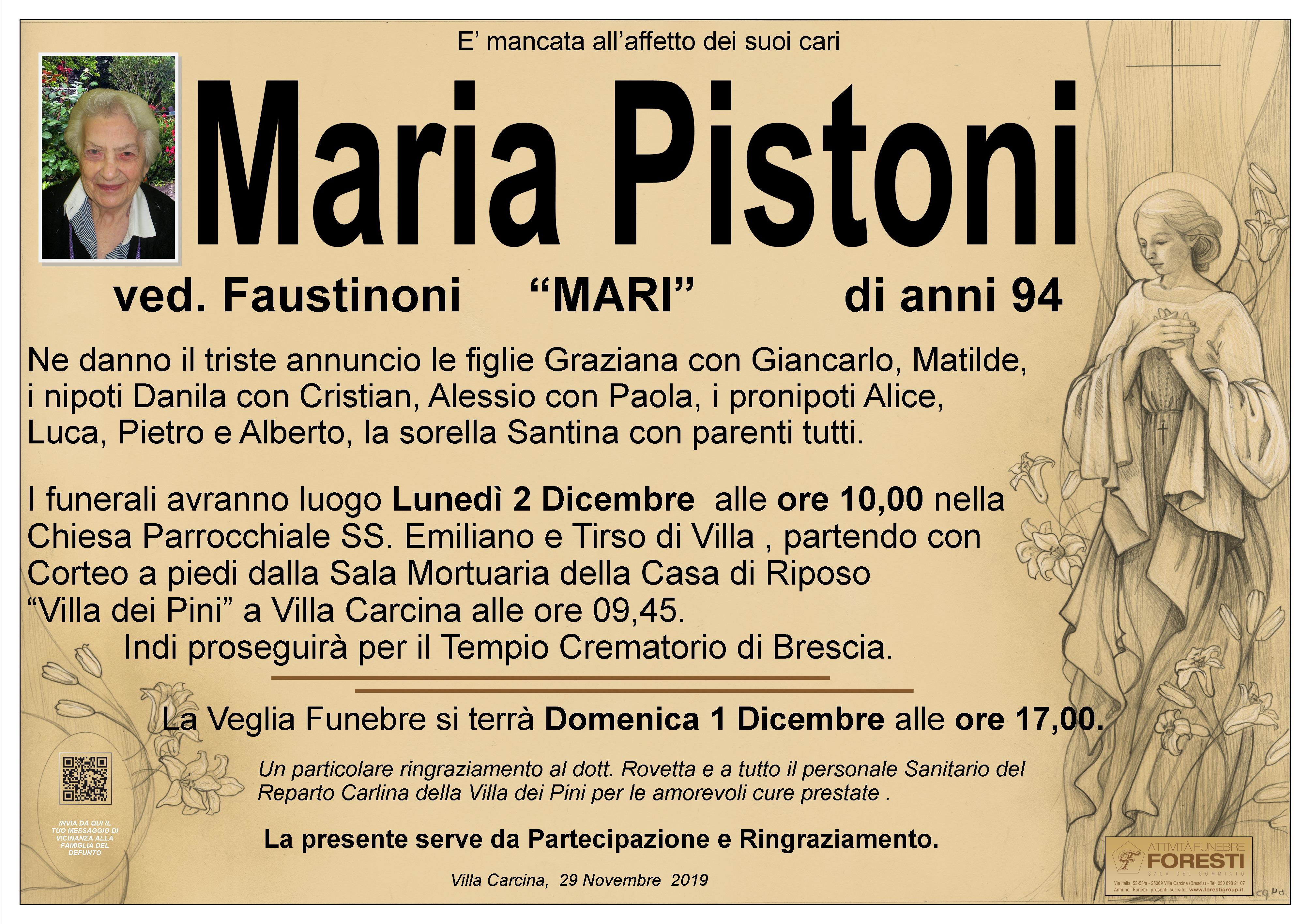 LA CARA MARIA RIPOSA PRESSO LA SALA MORTUARIA DELLA RSA VILLA DEI PINI,