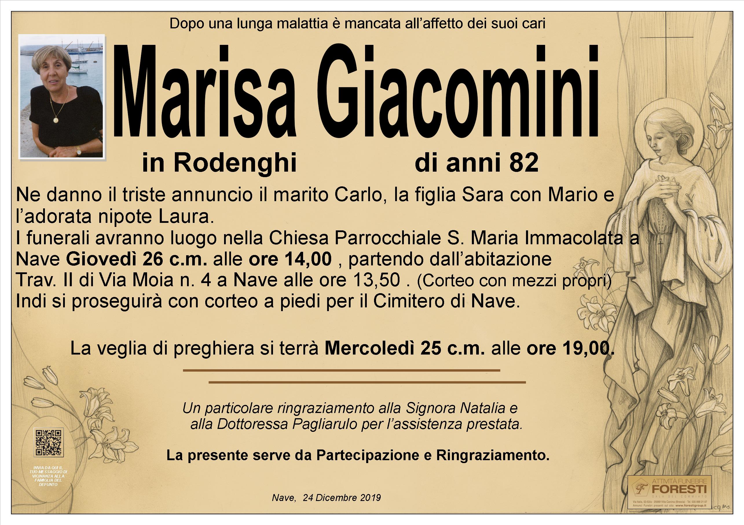 I FUNERALI AVRANNO LUOGO NELLA CHIESA PARROCCHIALE S. MARIA IMMACOLATA A NAVE GIOVEDI' 26 C.M. ALLE ORE 14,00.