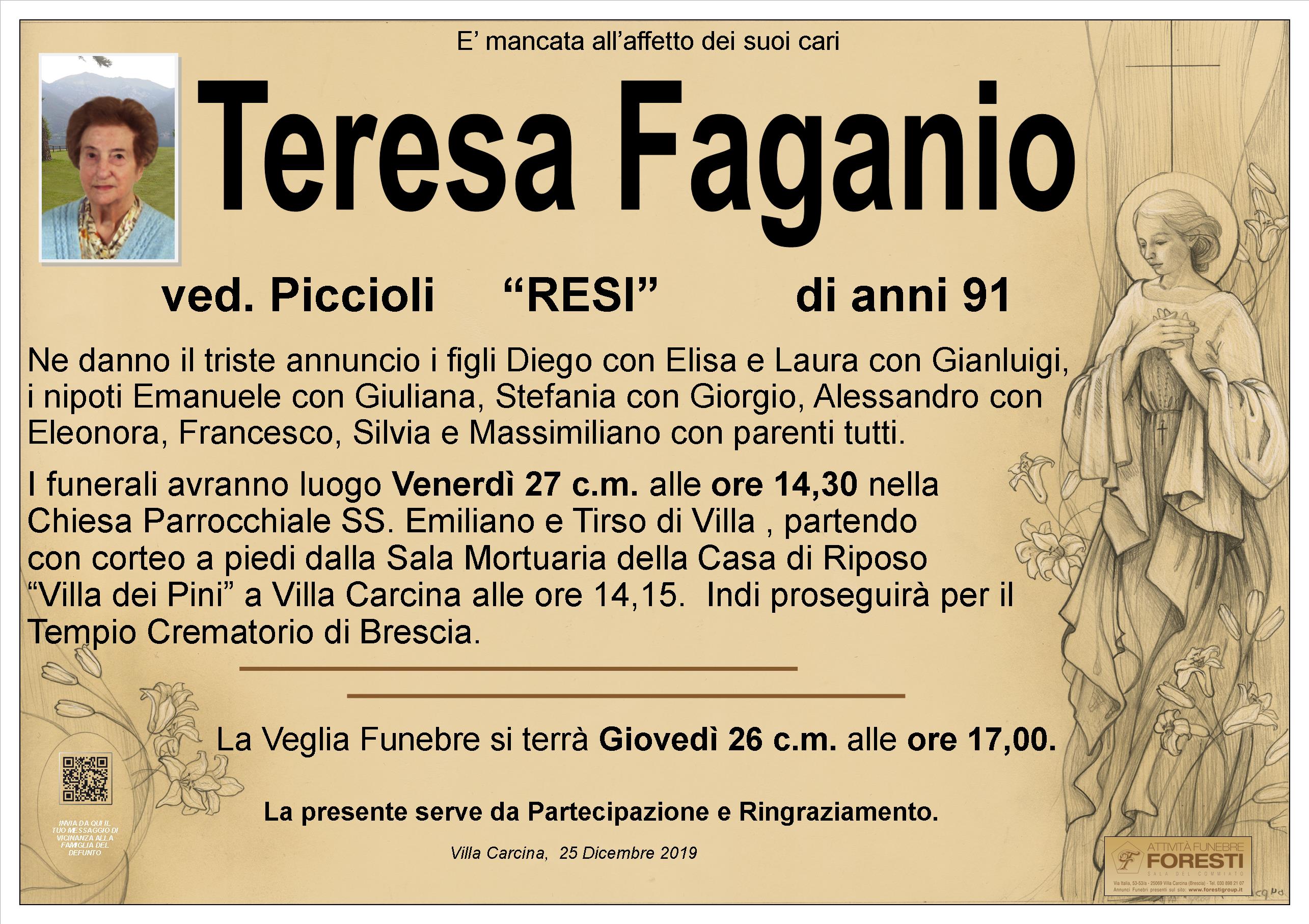 I FUNERALI AVRANNO LUOGO NELLA CHIESA PARROCCHIALE SS. EMILIANO E TIRSO A VILLA CARCINA VENERDI' 27 ALLE ORE 14,30.