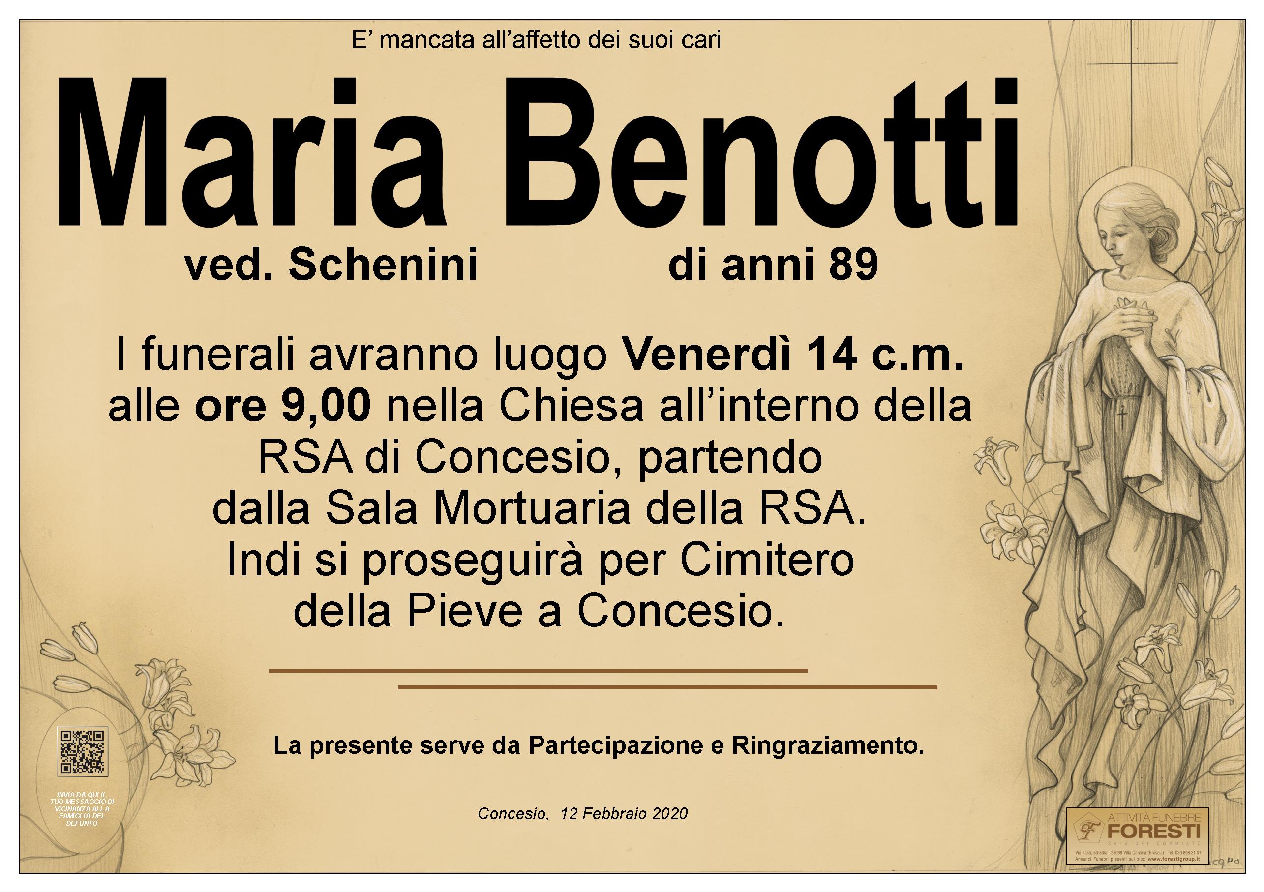 LA CARA MARIA RIPOSA PRESSO LA RSA DI CONCESIO, DOVE VENERDI' 14 C.M. ALLE ORE 9,00 SI TERRANNO I FUNERALI NELLA CHIESETTA INTERNA.