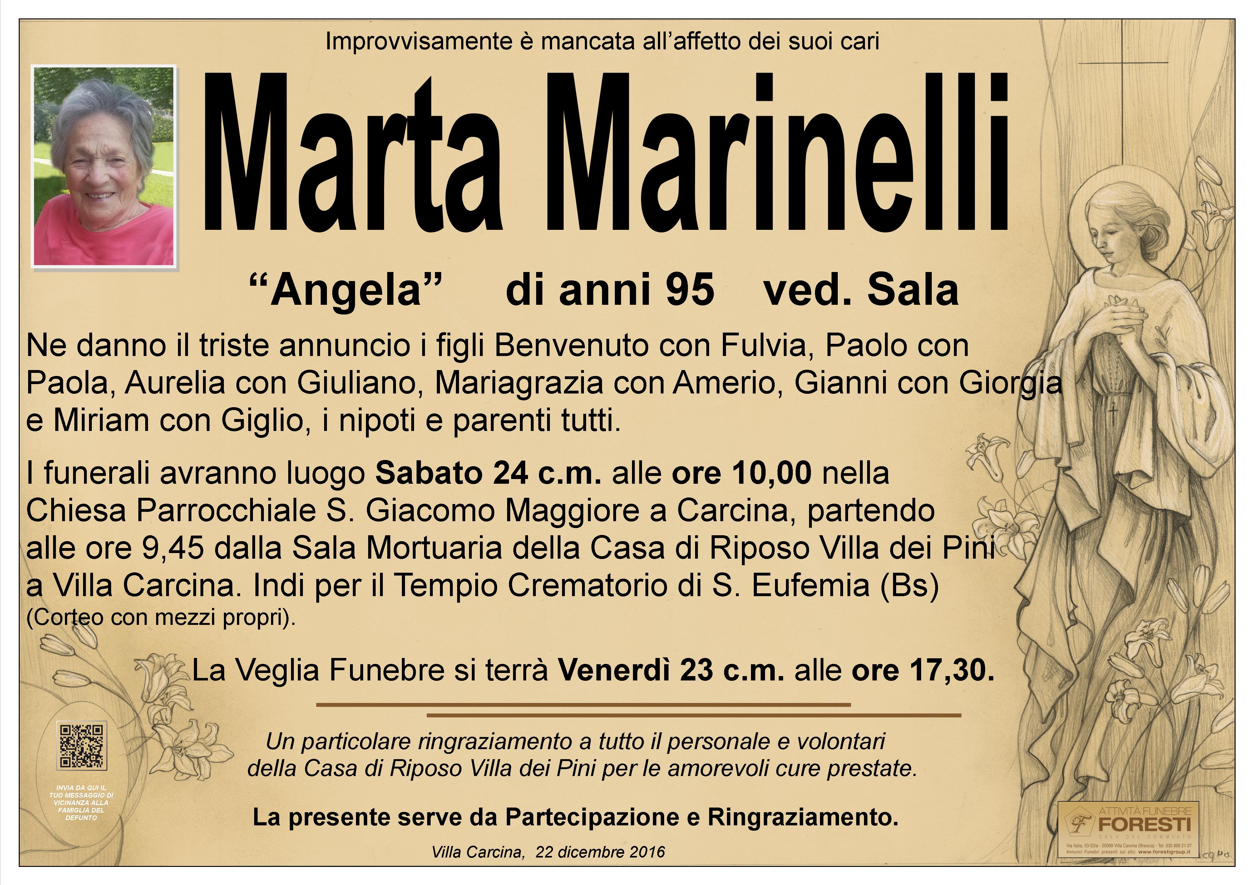 LA CARA MARTA  " ANGELA " RIPOSA PRESSO LA SALA MORTUARIA DELLA CASA DI RIPOSO VILLA DEI PINI.