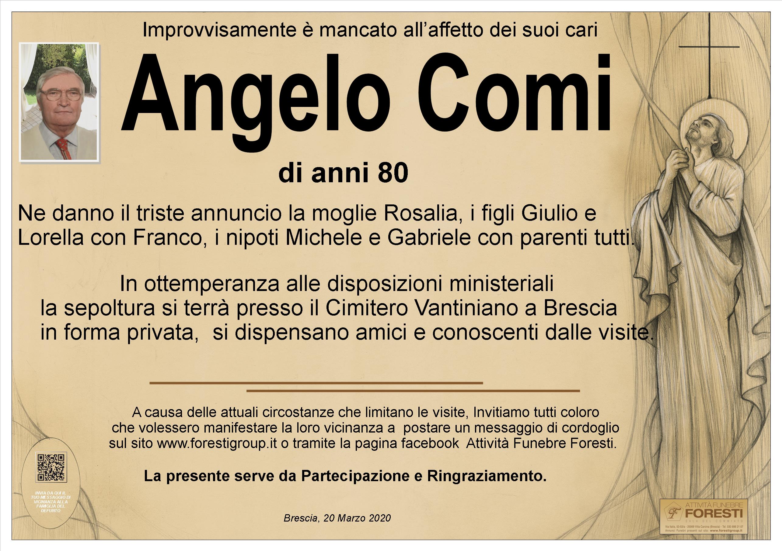 In ottemperanza alle disposizioni ministeriali la sepoltura si terrà presso il Cimitero Vantiniano a Brescia in forma privata, si dispensano amici e conoscenti dalle visite.