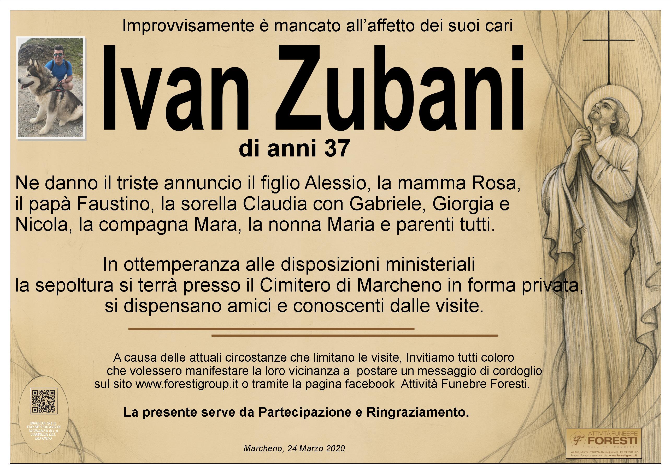 Mazzoleni Antonio e Luigina porgono sentite condoglianze alla famiglia Zubani per la perdita del loro caro Ivan