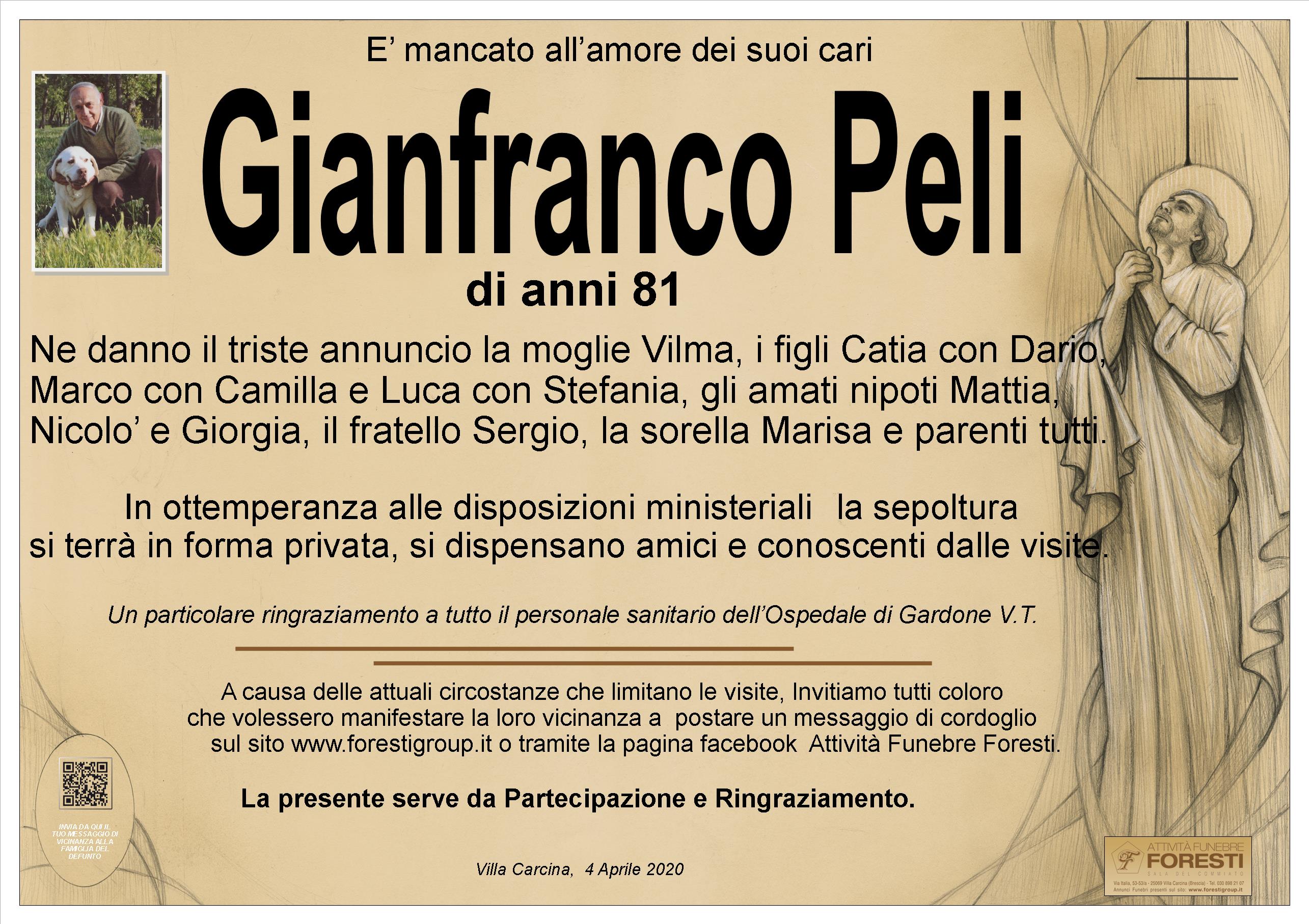 In questo triste momento, porgiamo alla cara zia Vilma e figli CATIA, Luca e Marco le nostre più sentite condoglianze, per la perdita del carissimo zio Franco. Famiglia Peli Pierangelo con Romina, Bruno e Lorenzo