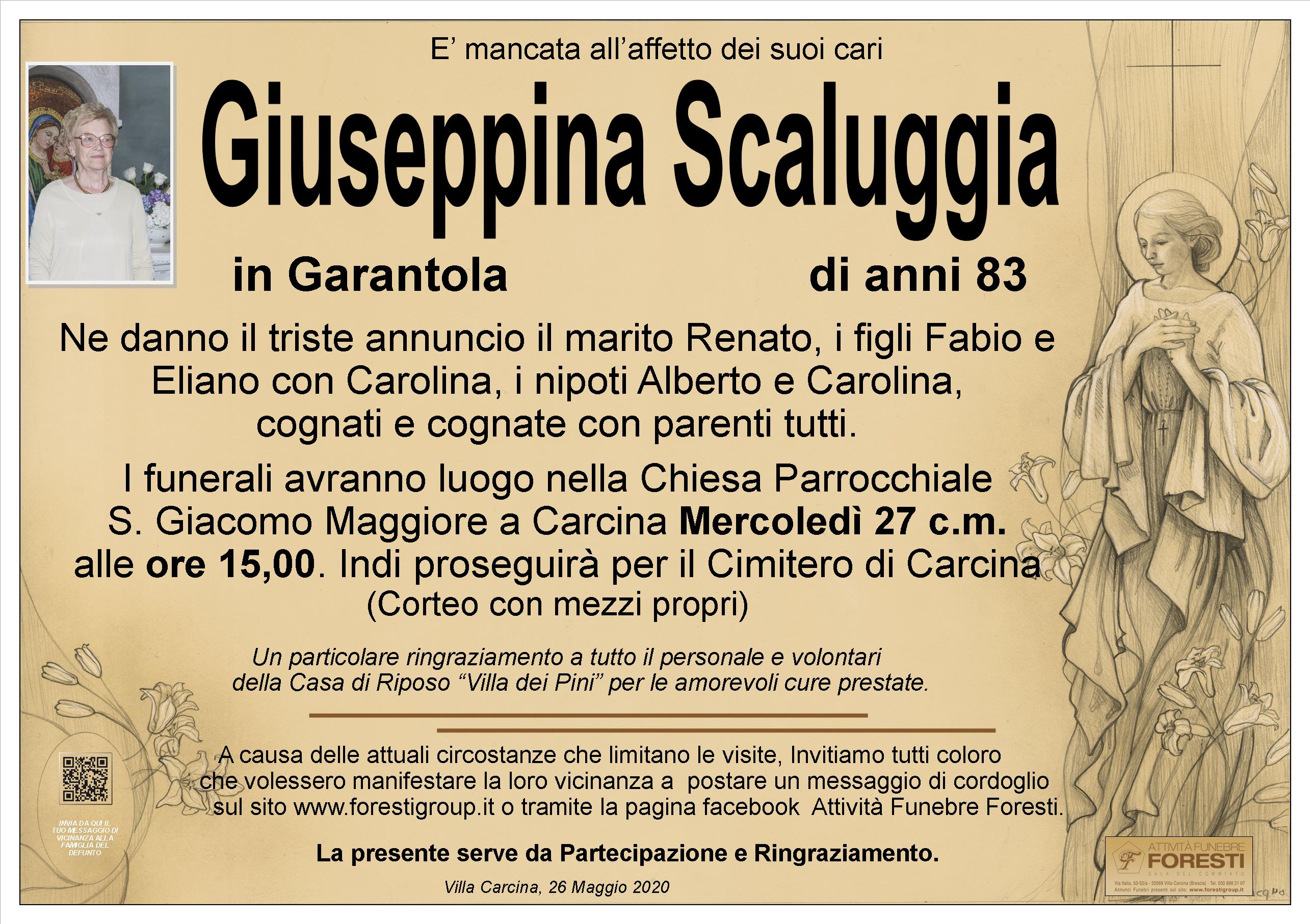 I funerali avranno luogo nella Chiesa Parrocchiale S. Giacomo Maggiore a Carcina Mercoledì 27 c.m. alle ore 15,00. Indi proseguirà per il Cimitero di Carcina (Corteo con mezzi propri)
