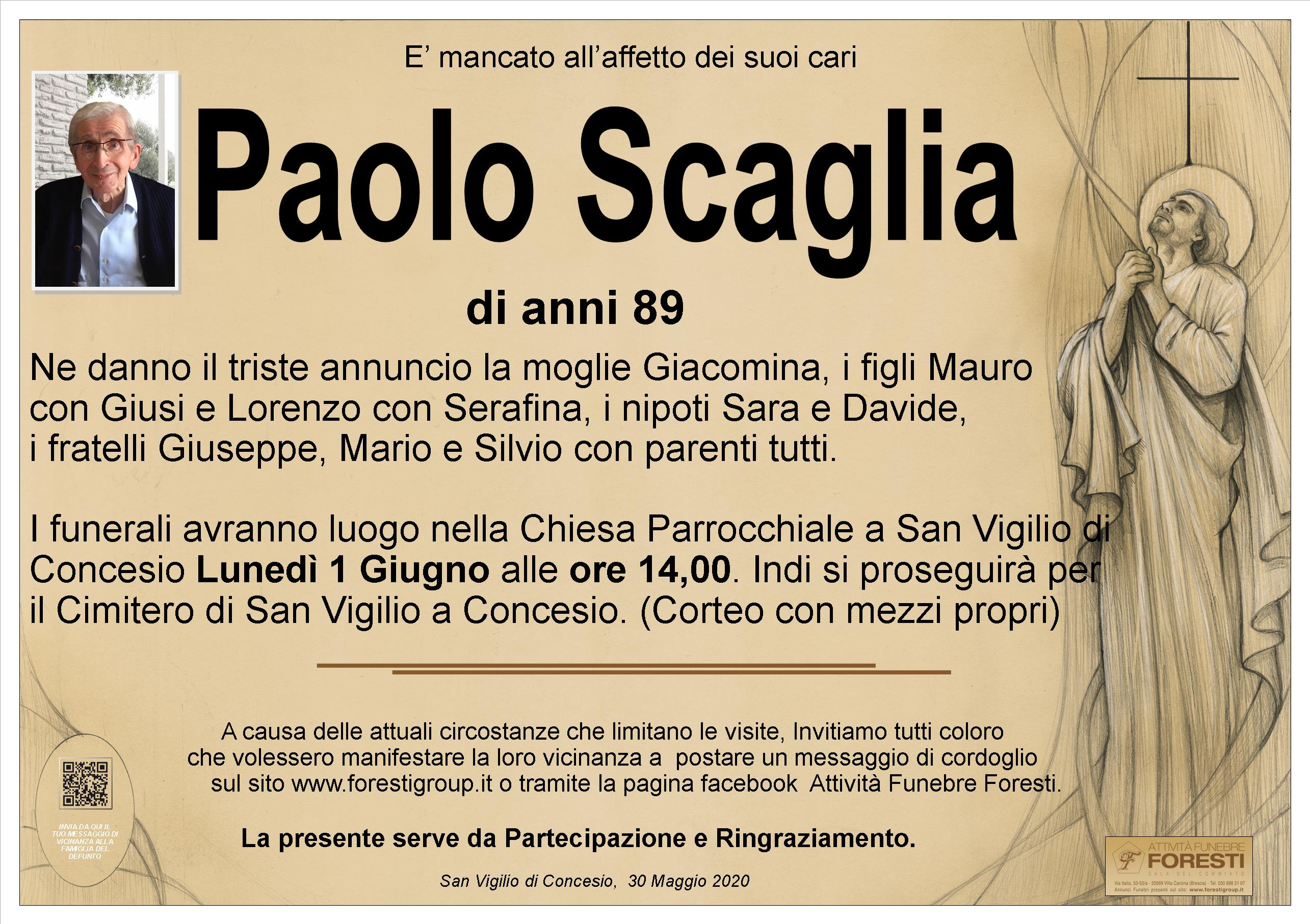 I funerali avranno luogo nella Chiesa Parrocchiale a San Vigilio di Concesio Lunedì 1 Giugno alle ore 14,00. Indi si proseguirà per il Cimitero di San Vigilio a Concesio. (Corteo con mezzi propri)