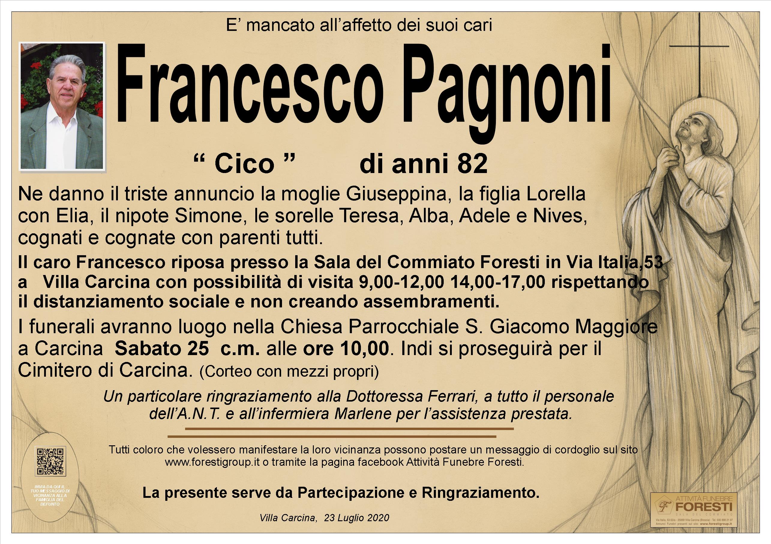 Il caro Francesco riposa presso la Sala del Commiato Foresti in Via Italia,53 a Villa Carcina con possibilità di visita 9,00-12,00 14,00-17,00 rispettando il distanziamento sociale e non creando assembramenti.