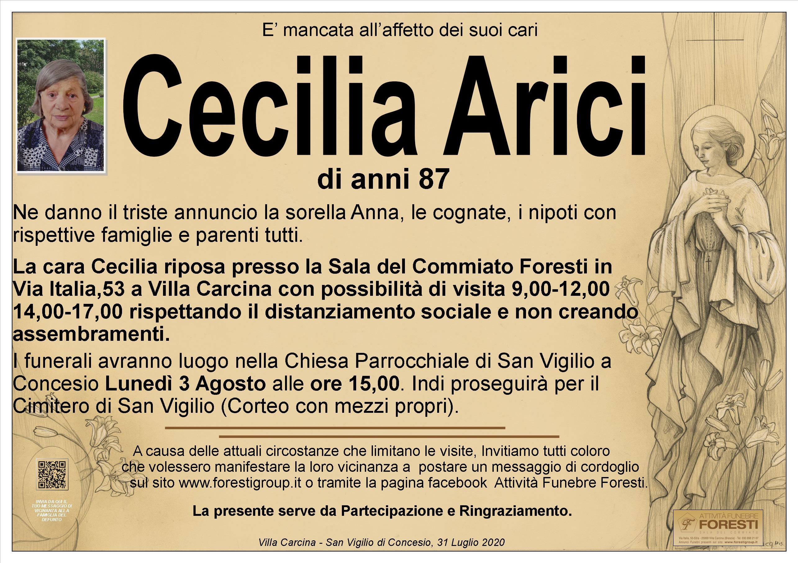 La cara Cecilia riposa presso la Sala del Commiato Foresti in Via Italia,53 a Villa Carcina con possibilità di visita 9,00-12,00 14,00-17,00 rispettando il distanziamento sociale e non creando assembramenti.