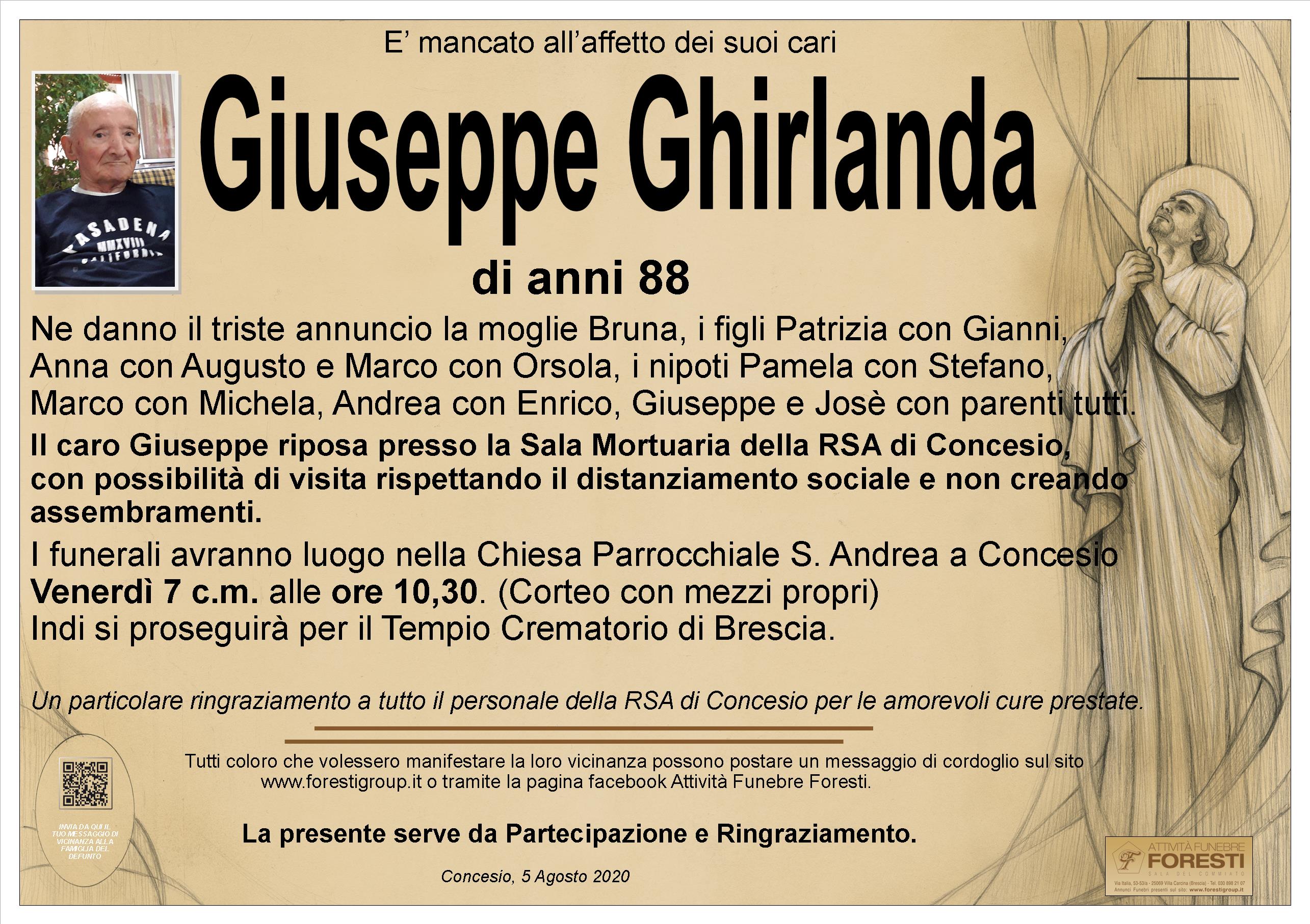 Il caro Giuseppe riposa presso la Sala Mortuaria della RSA di Concesio, con possibilità di visita rispettando il distanziamento sociale e non creando assembramenti.