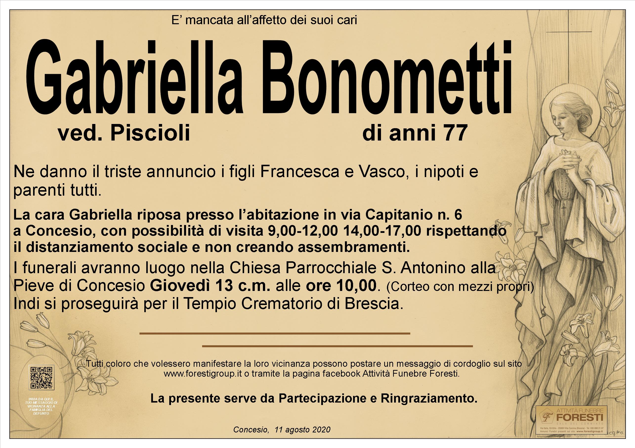 La cara Gabriella riposa presso l’abitazione in via Capitanio n. 6 a Concesio, con possibilità di visita 9,00-12,00 14,00-17,00 rispettando il distanziamento sociale e non creando assembramenti.