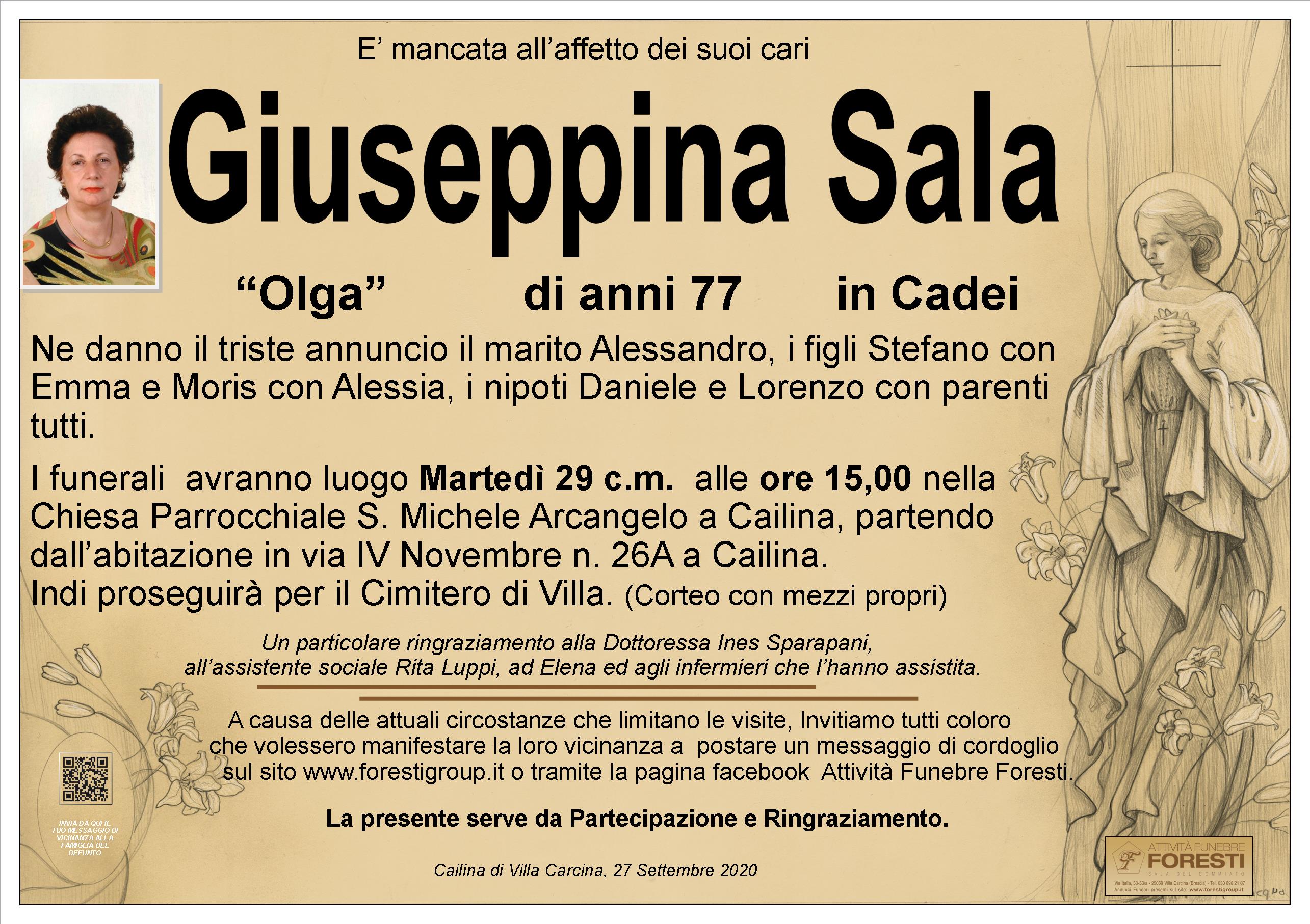 I funerali avranno luogo Martedì 29 c.m. alle ore 15,00 nella Chiesa Parrocchiale S. Michele Arcangelo a Cailina, partendo dall’abitazione in via IV Novembre n. 26A a Cailina. Indi proseguirà per il Cimitero di Villa. (Corteo con mezzi propri)