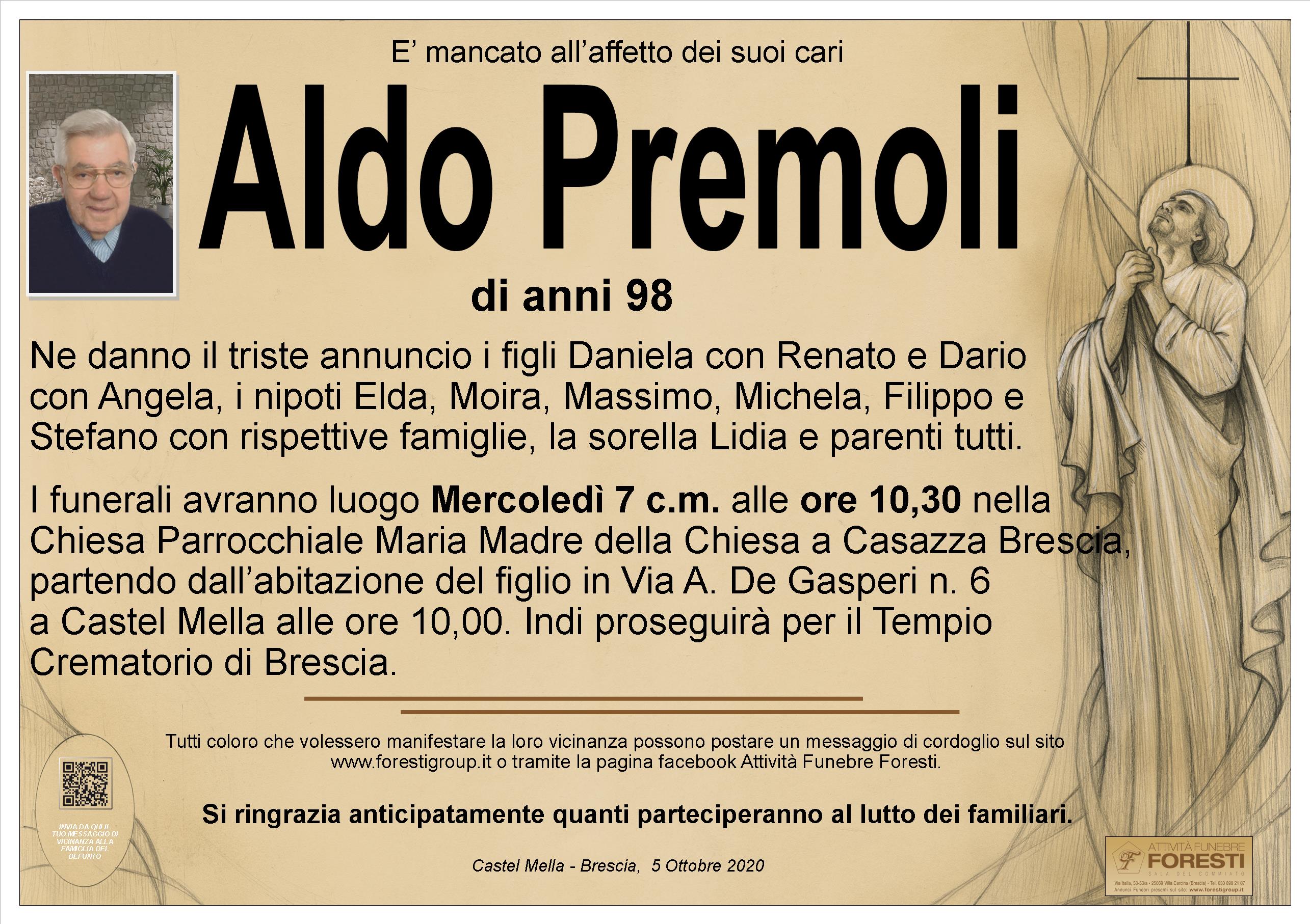 I funerali avranno luogo Mercoledì 7 c.m. alle ore 10,30 nella Chiesa Parrocchiale Maria Madre della Chiesa a Casazza Brescia, partendo dall’abitazione del figlio in Via A. De Gasperi n. 6  a Castel Mella alle ore 10,00. Indi proseguirà per il Tempio Crematorio di Brescia.