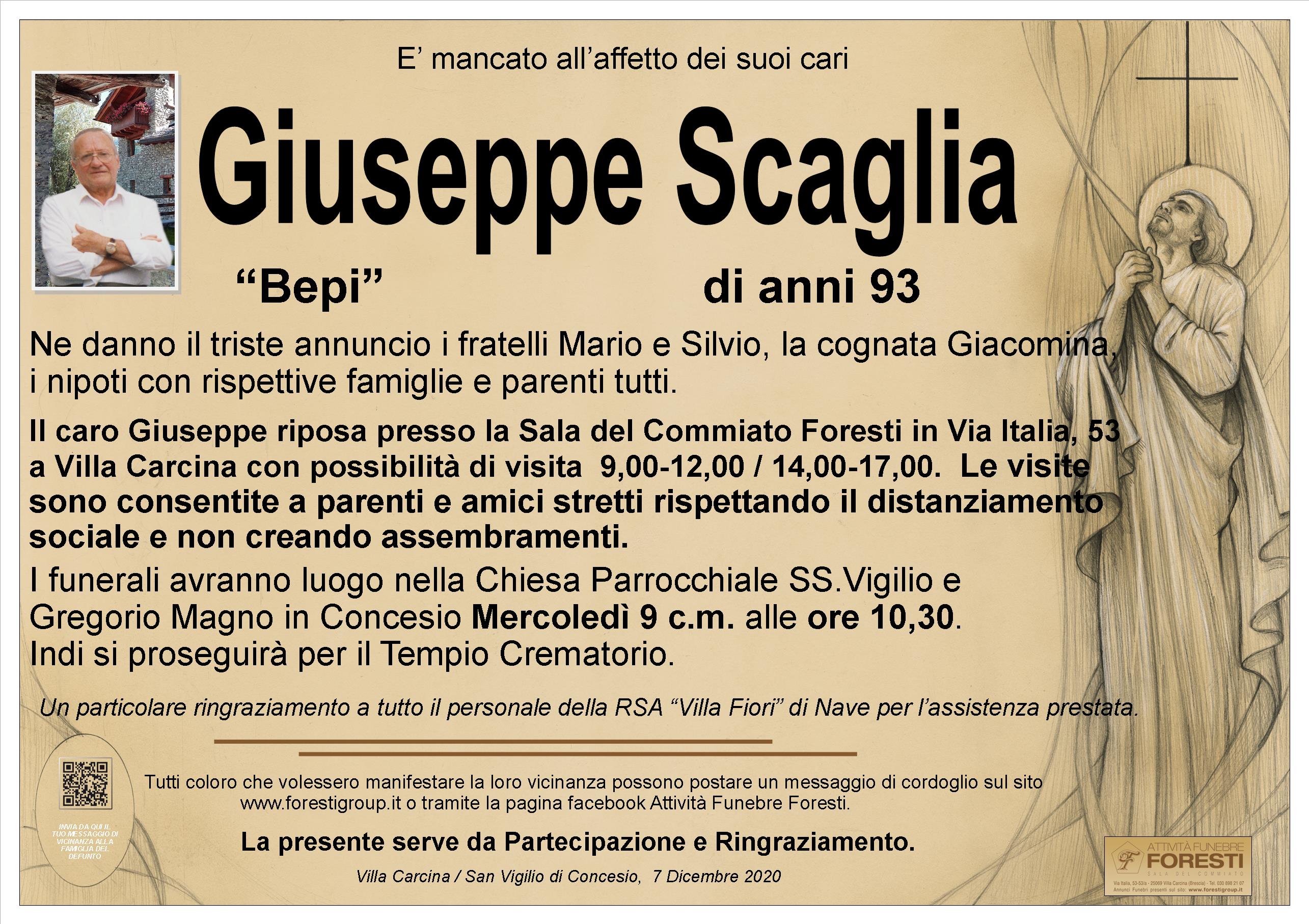 Il caro Giuseppe riposa presso la Sala del Commiato Foresti in Via Italia, 53 a Villa Carcina con possibilità di visita 9,00-12,00 / 14,00-17,00. Le visite sono consentite a parenti e amici stretti rispettando il distanziamento sociale e non creando assembramenti.