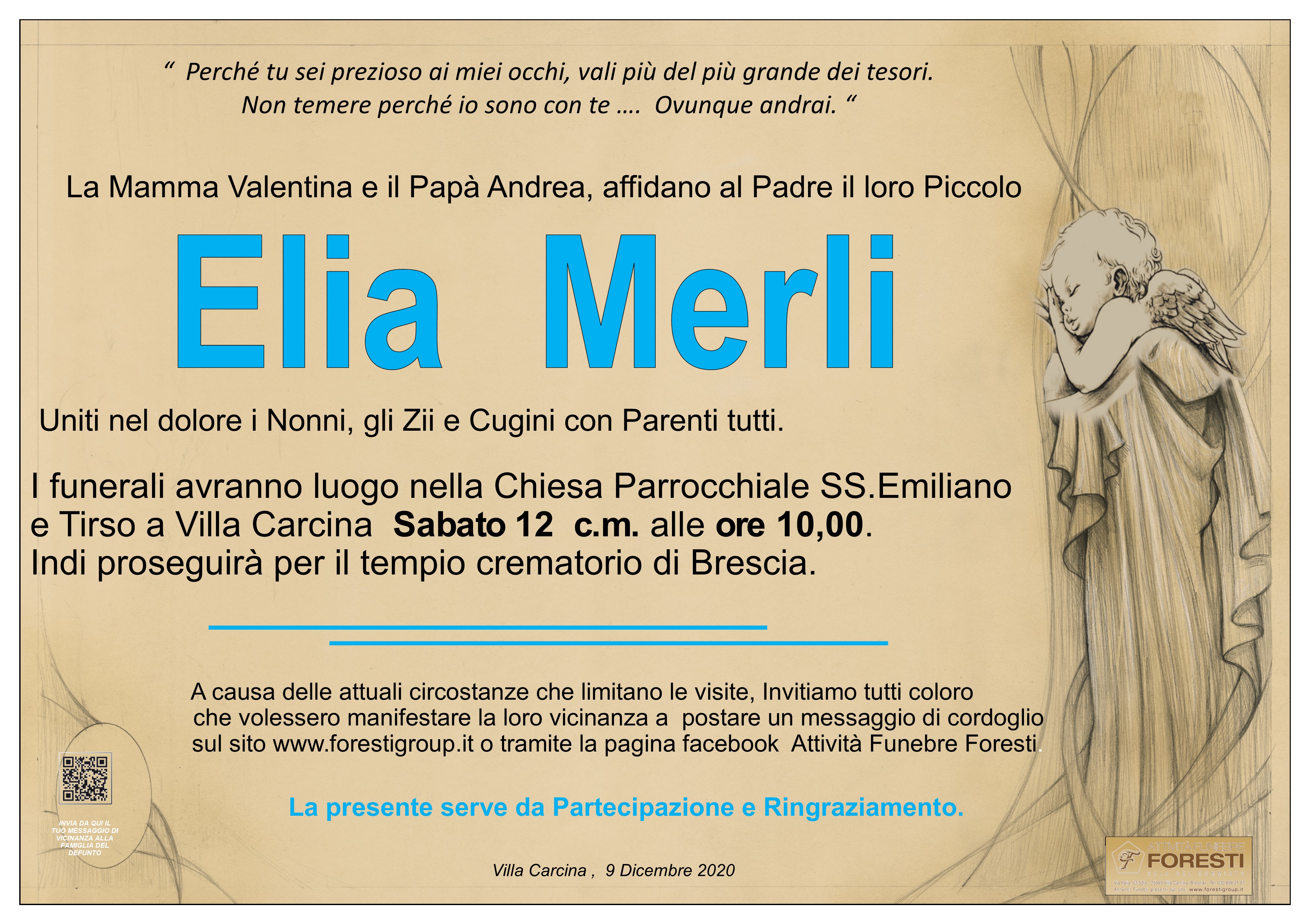 Il vostro caro angelo Elia Veglia su mamma papa' nonni e familiari tutti... Camminera' silenzioso accanto alle persone care al suo cuore illuminando il vostro cammino e la sua luce asciughera' le vostre lacrime. Un abbraccio Maria Emma Trivella e famiglia