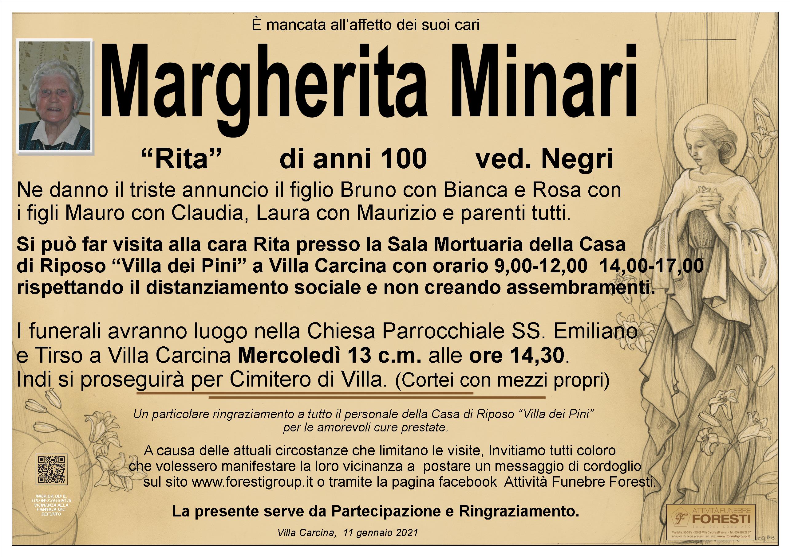 Si può far visita alla cara Rita presso la Sala Mortuaria della Casa di Riposo “Villa dei Pini” a Villa Carcina con orario 9,00-12,00 14,00-17,00 rispettando il distanziamento sociale e non creando assembramenti.