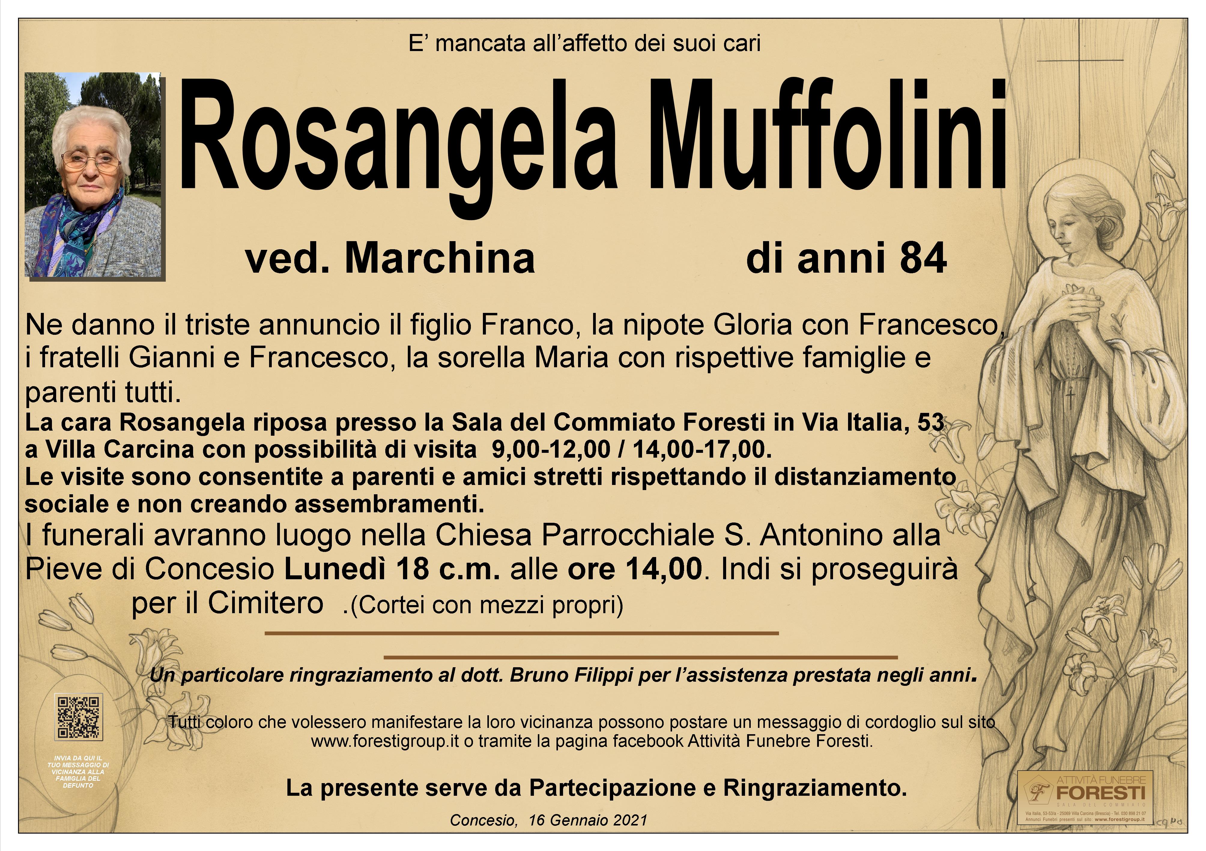 Particolarmente vicine in questo momento di dolore, assicuriamo il nostro ricordo e la nostra preghiera per la cara Rosangela. Il Signore l'accolga nel suo regno di luce e le conceda la pace eterna. A Franco e a tutti i familiari le nostre più sentite condoglianze. Rosa e Irene Ferlinghetti
