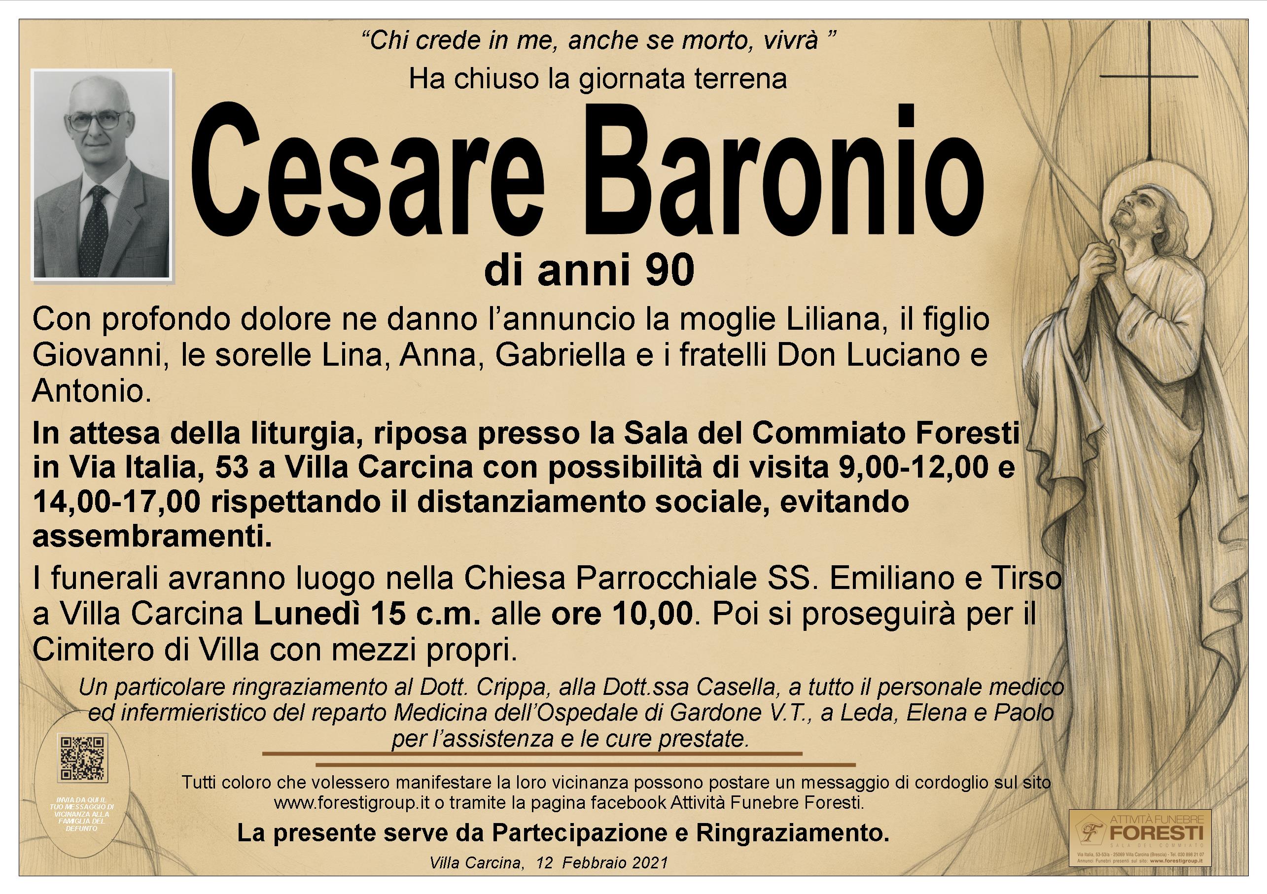 Partecipiamo con dolore alla triste dipartita del sigg Cesare Baronio. Fam Redolfi e Spada