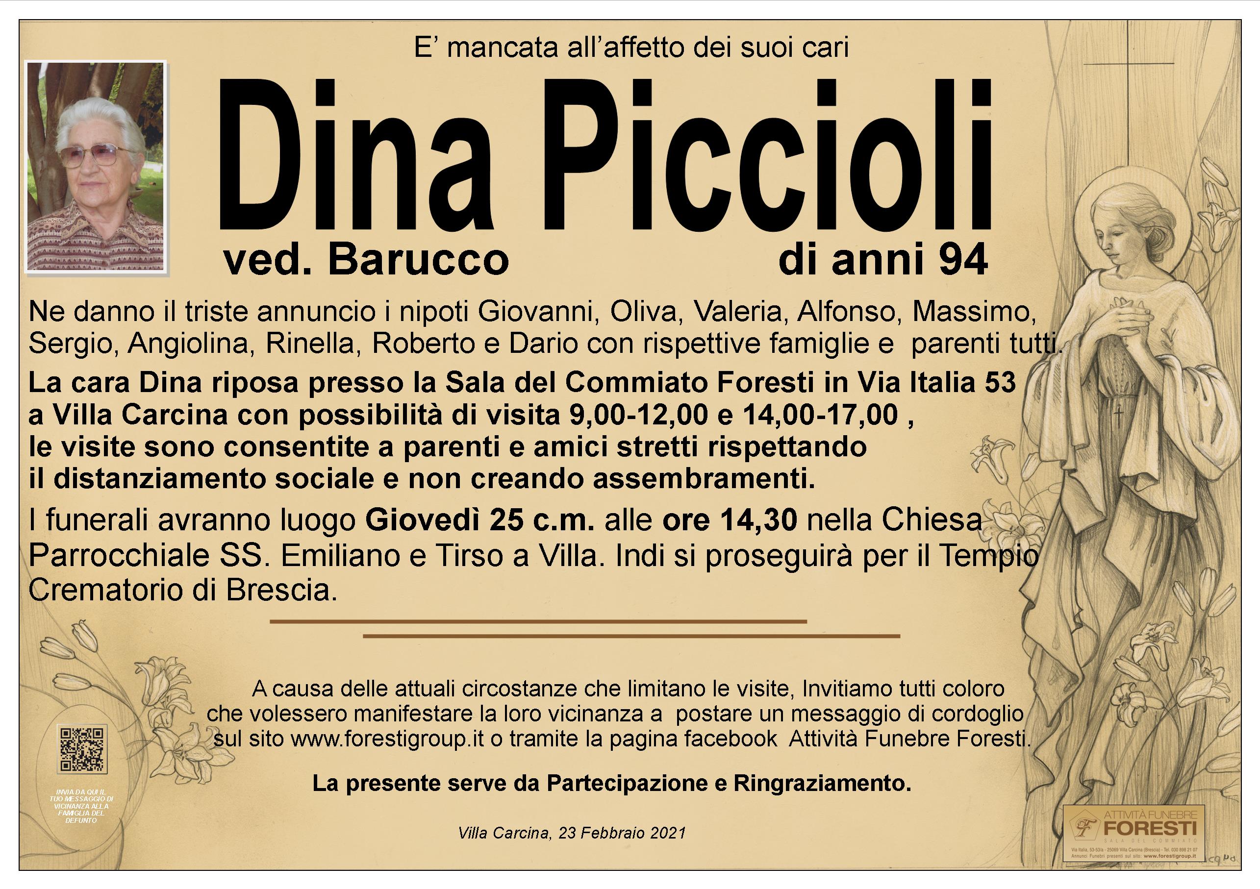 La cara Dina riposa presso la Sala del Commiato Foresti in Via Italia 53 a Villa Carcina con possibilità di visita 9,00-12,00 e 14,00-17,00 , le visite sono consentite a parenti e amici stretti rispettando il distanziamento sociale e non creando assembramenti.