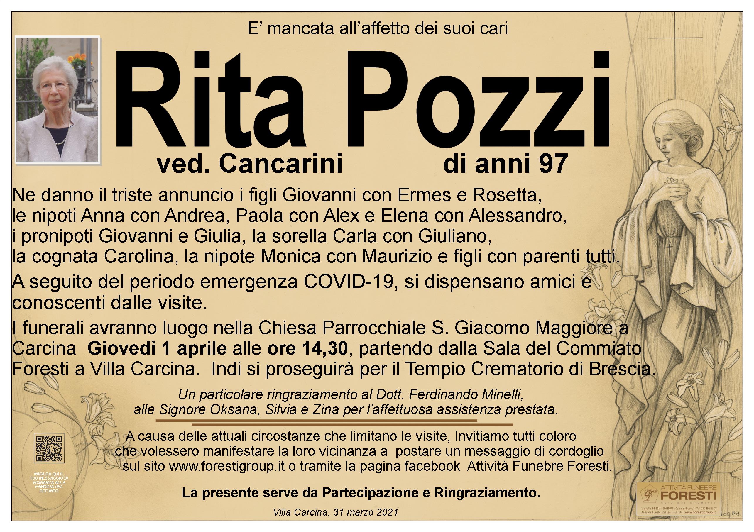 Ci piace questa sera ricordare Rita come una donna capace di vera accoglienza e di grande fede. La situazione sanitaria e il Triduo Pasquale non ci permettono di essere presenti , ricorderemo zia Rita e zia Virginia nella s. Messa di sabato 10 aprile alle 18.30 nel Duomo di Montichiari. Sentite condoglianze e buon cammino verso la Pasqua del Signore in comunione con tutti i nostri morti. Fiorenza, Giulia con Severino, Carlo e Marco e don Cesare.