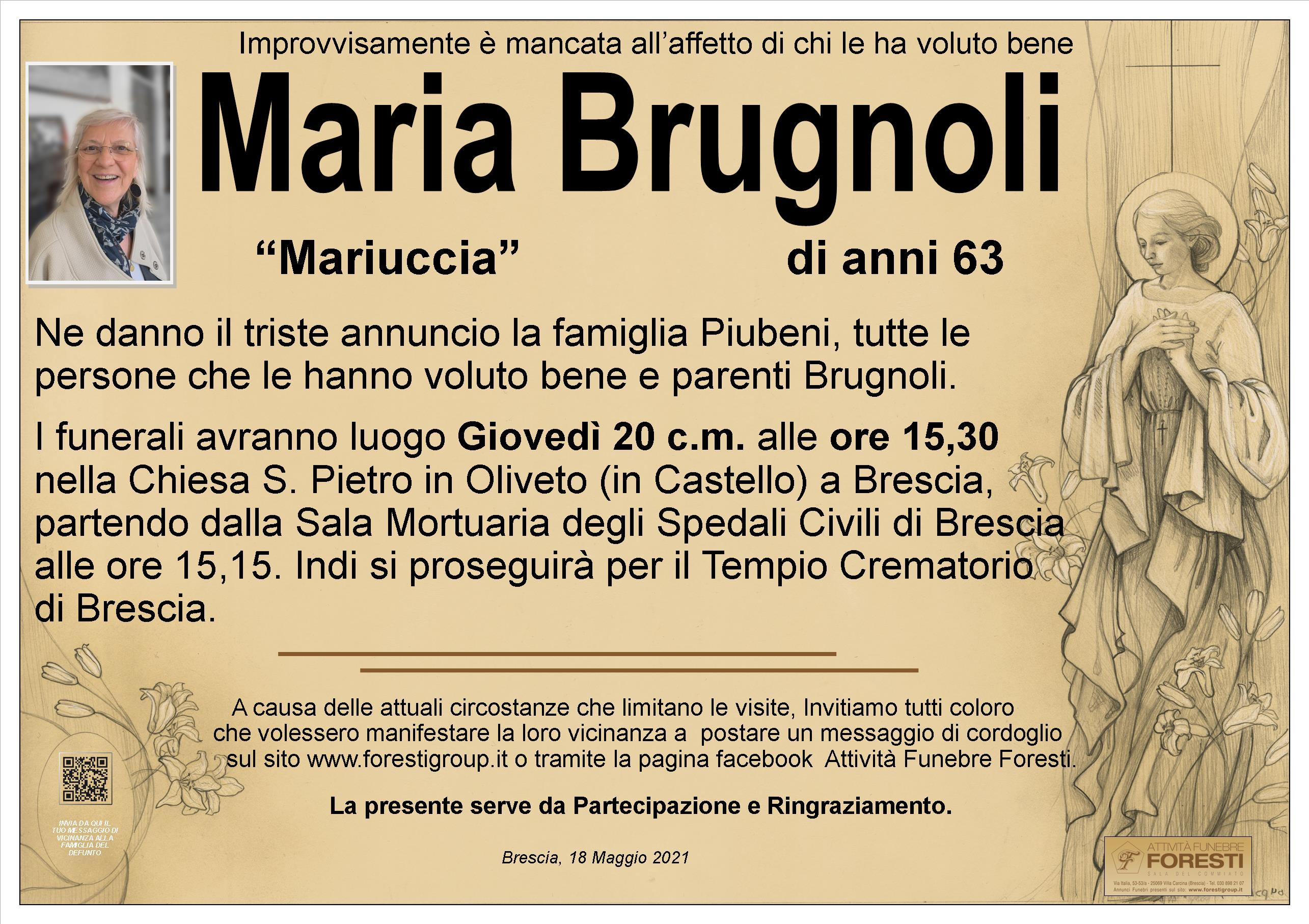 I funerali avranno luogo Giovedì 20 c.m. alle ore 15,30 nella Chiesa S. Pietro in Oliveto (in Castello) a Brescia, partendo dalla Sala Mortuaria degli Spedali Civili di Brescia alle ore 15,15. Indi si proseguirà per il Tempio Crematorio di Brescia.