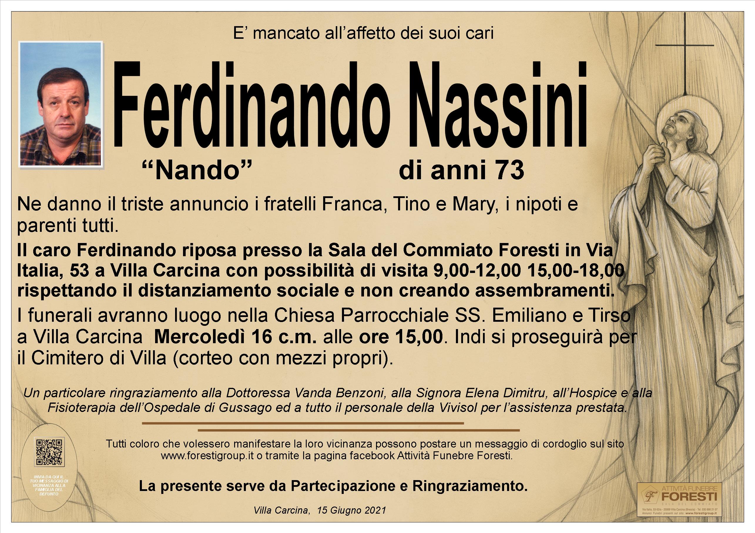 Il caro Ferdinando riposa presso la Sala del Commiato Foresti in Via Italia, 53 a Villa Carcina con possibilità di visita 9,00-12,00 15,00-18,00 rispettando il distanziamento sociale e non creando assembramenti.