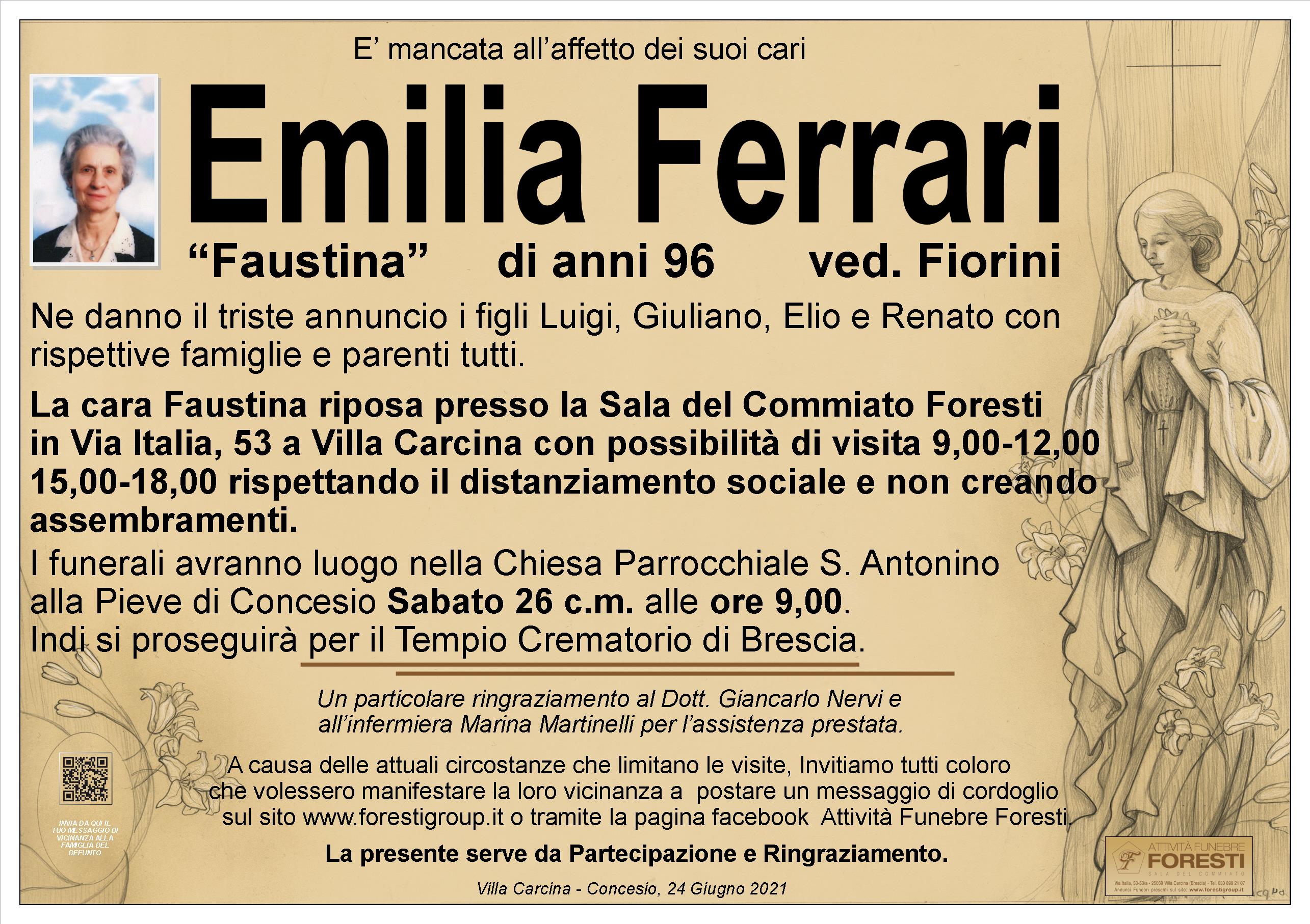 La cara Faustina riposa presso la Sala del Commiato Foresti in Via Italia, 53 a Villa Carcina con possibilità di visita 9,00-12,00 15,00-18,00 rispettando il distanziamento sociale e non creando assembramenti.