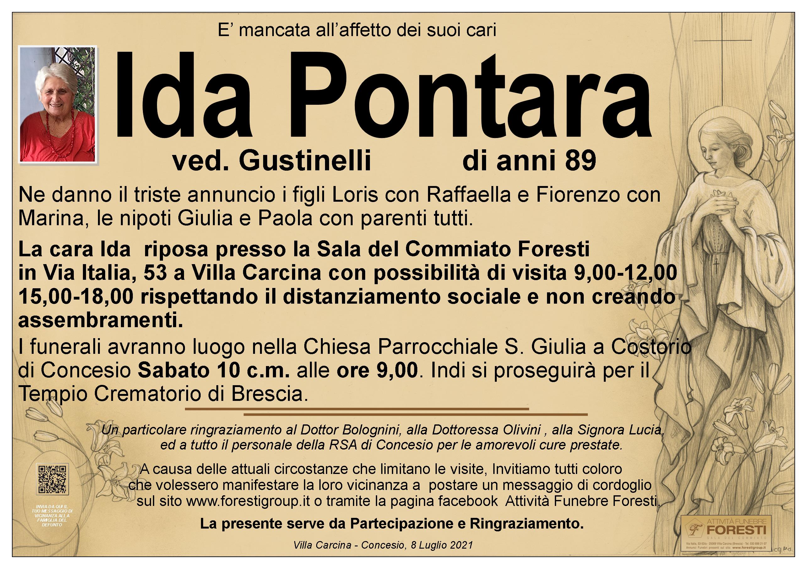 La cara Ida riposa presso la Sala del Commiato Foresti in Via Italia, 53 a Villa Carcina con possibilità di visita 9,00-12,00 15,00-18,00 rispettando il distanziamento sociale e non creando assembramenti.
