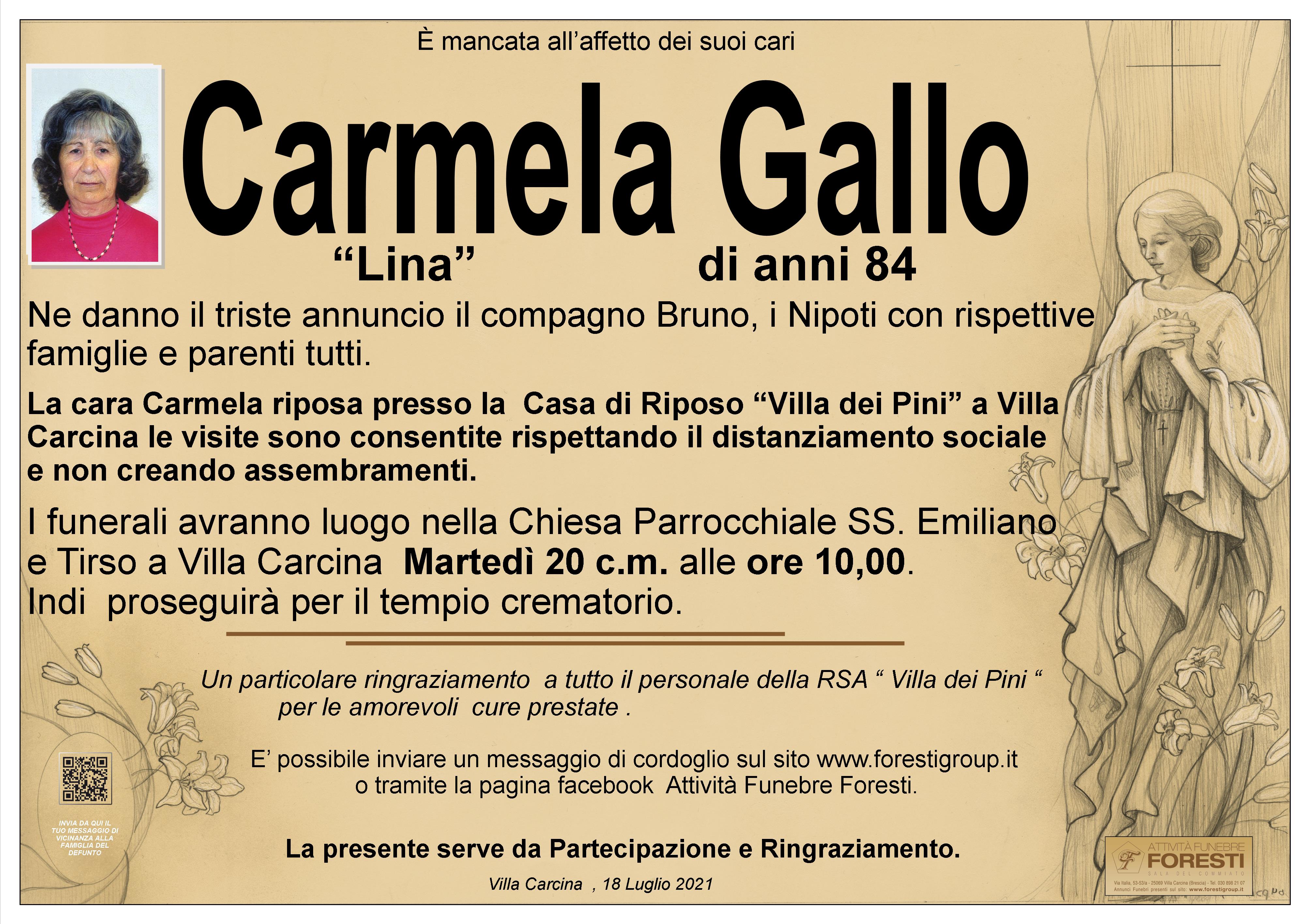 LA CARA CARMELA RIPOSA PRESSO LA RSA VILLA DEI PINI IN VILLA CARCINA