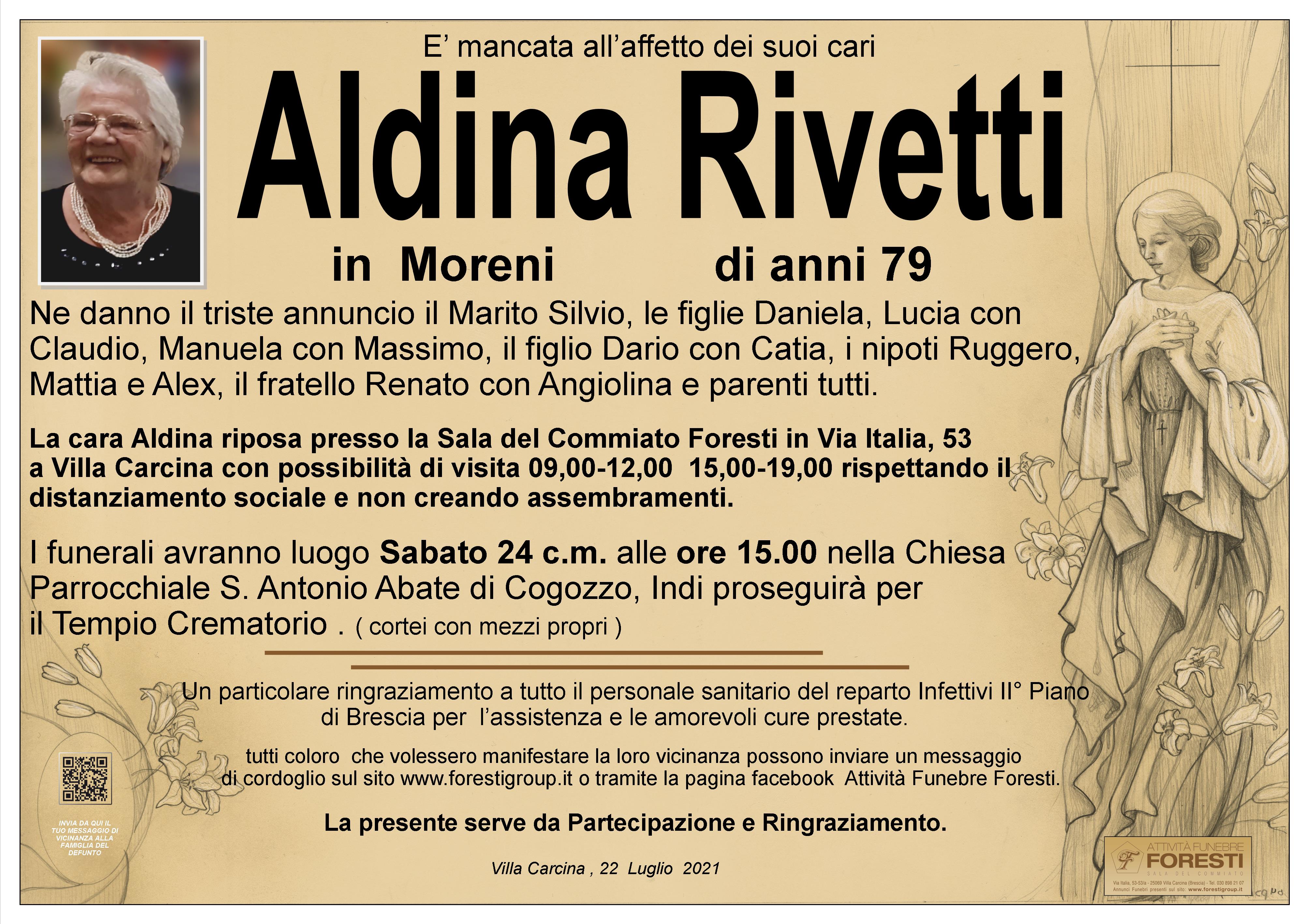 "Coloro che amiamo e che abbiamo perduto non sono più dove erano ma sono ovunque noi siamo" commossi per la perdita della cara cugina Aldina siamo vicini al marito Silvio ai figli Daniela Lucia Dario e Manuela e rispettive famiglie assicurando la nostra preghiera Bruna e Dalmazio Antonella con Paolo Oscar con Roberta, don Marco