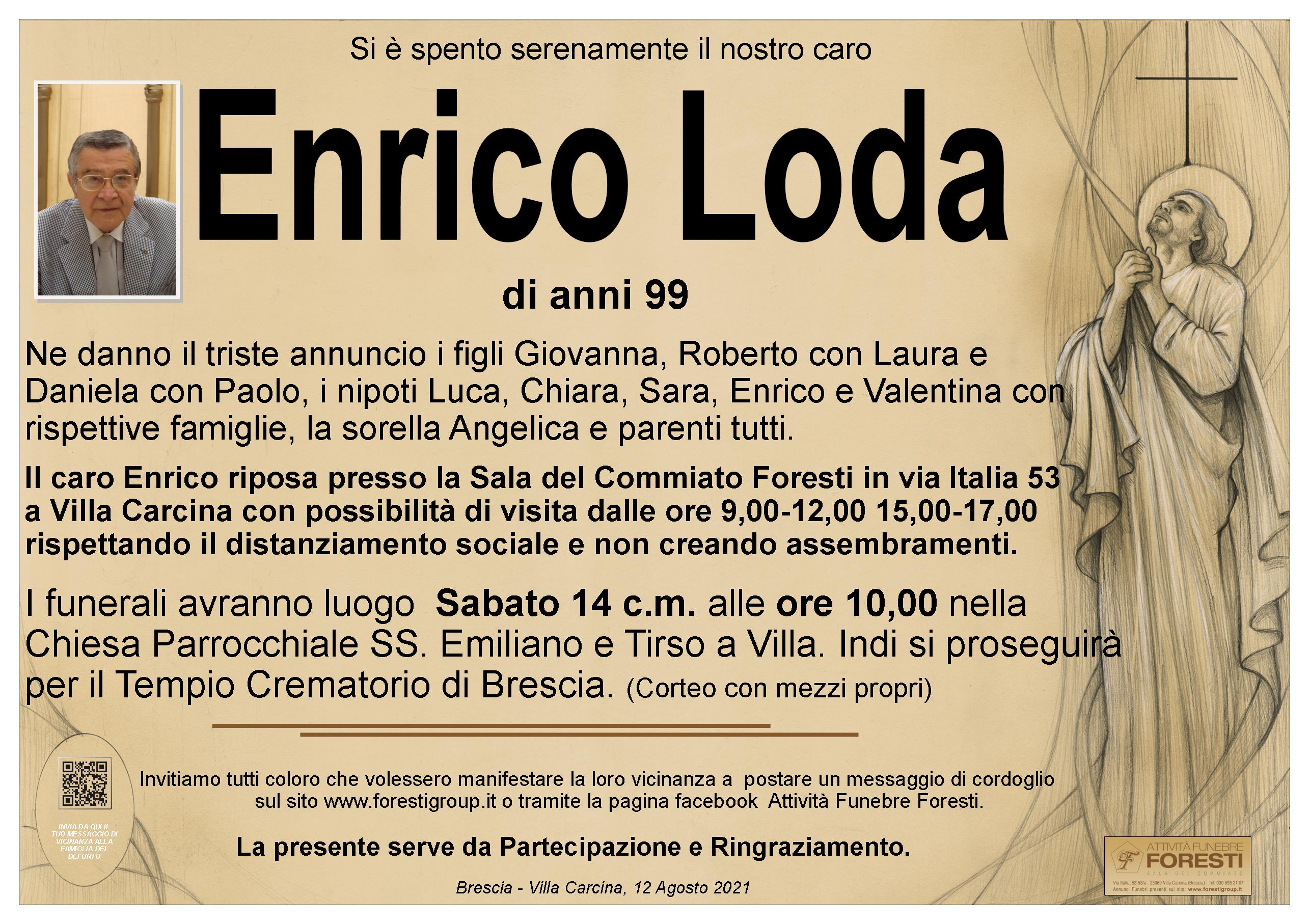 Il caro Enrico riposa presso la Sala del Commiato Foresti in via Italia 53 a Villa Carcina con possibilità di visita dalle ore 9,00-12,00 15,00-17,00 rispettando il distanziamento sociale e non creando assembramenti.
