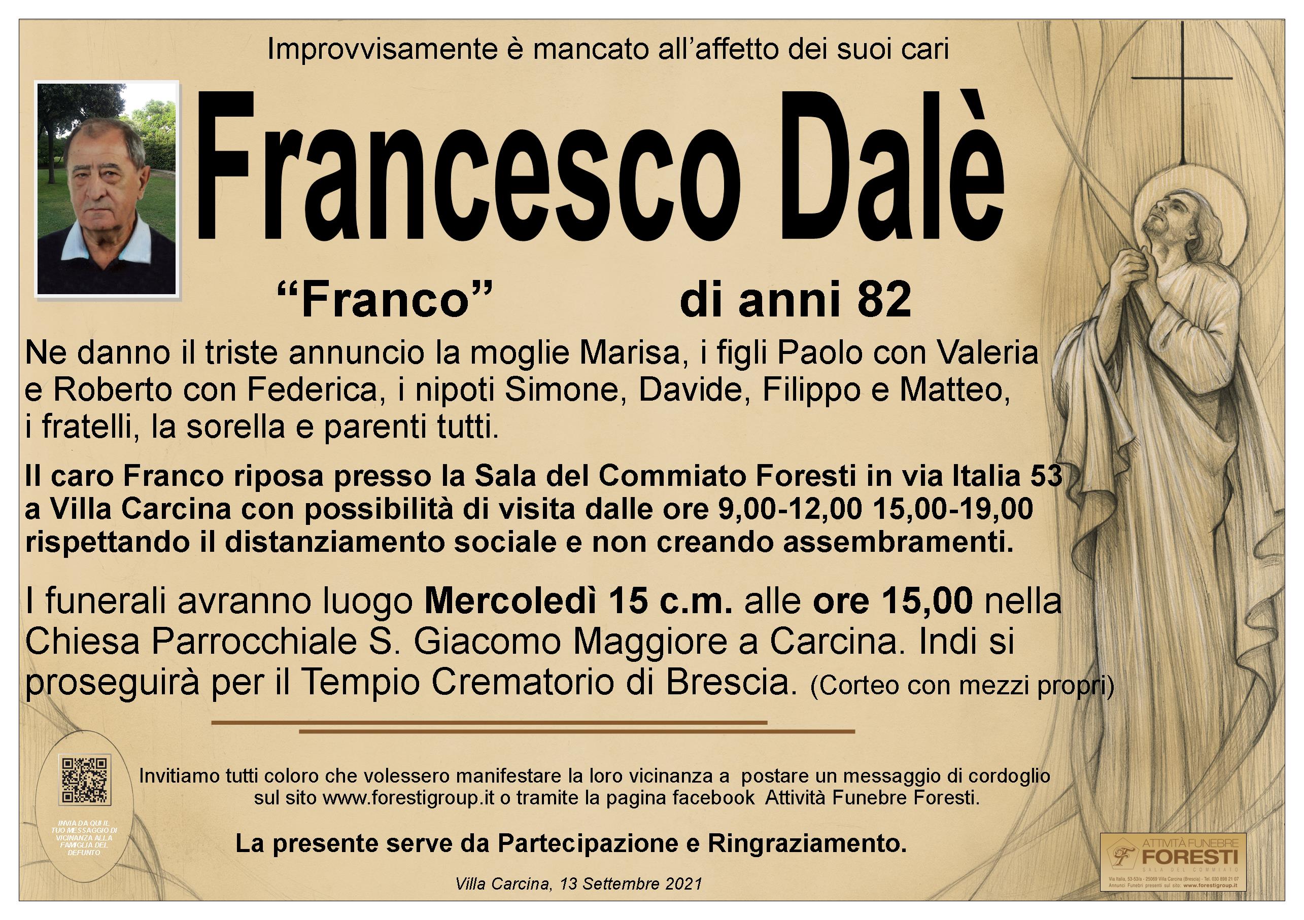 Il caro Franco riposa presso la Sala del Commiato Foresti in via Italia 53 a Villa Carcina con possibilità di visita dalle ore 9,00-12,00 15,00-19,00 rispettando il distanziamento sociale e non creando assembramenti.
