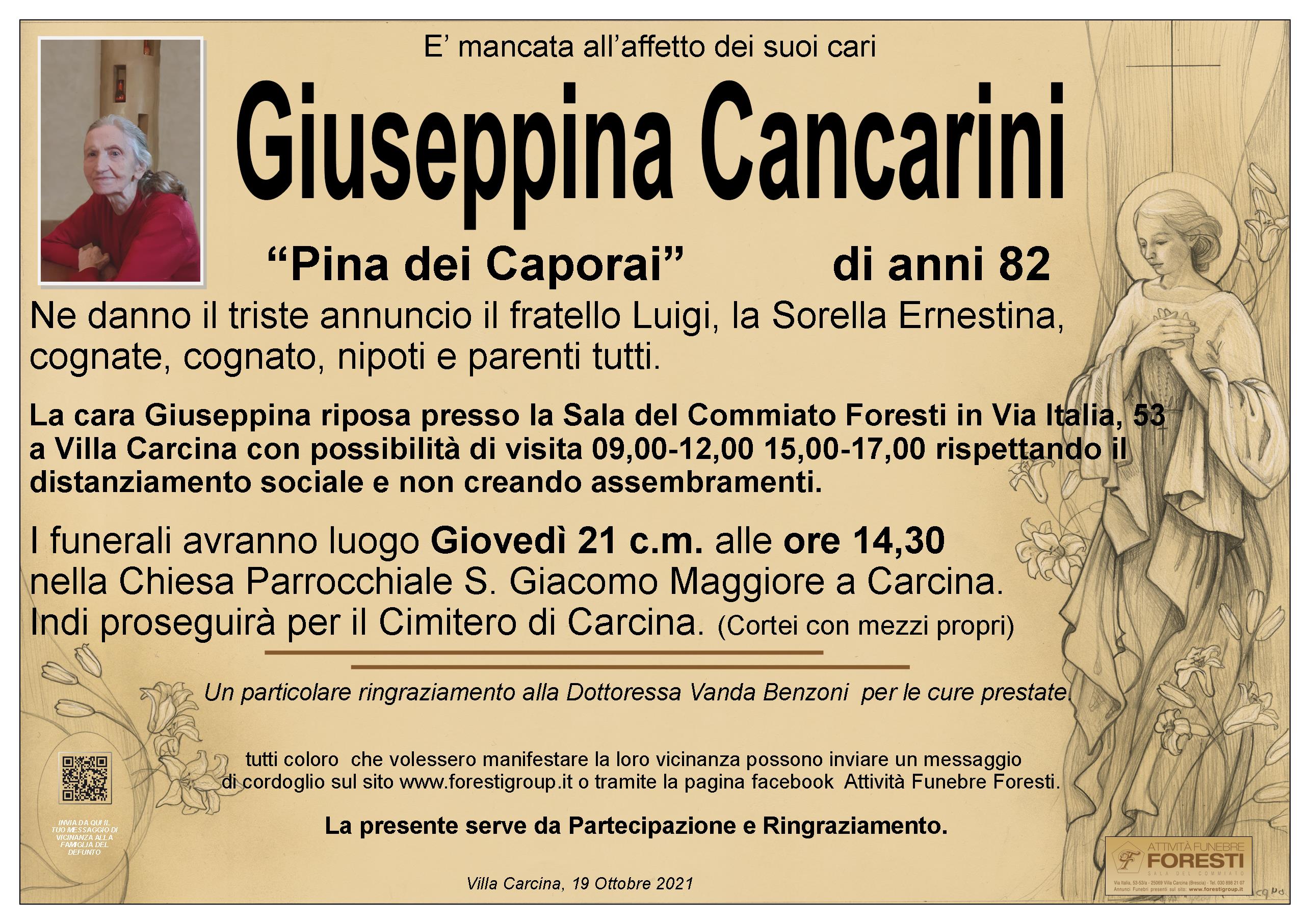 La cara Giuseppina riposa presso la Sala del Commiato Foresti in Via Italia, 53 a Villa Carcina con possibilità di visita 09,00-12,00 15,00-17,00 rispettando il distanziamento sociale e non creando assembramenti.