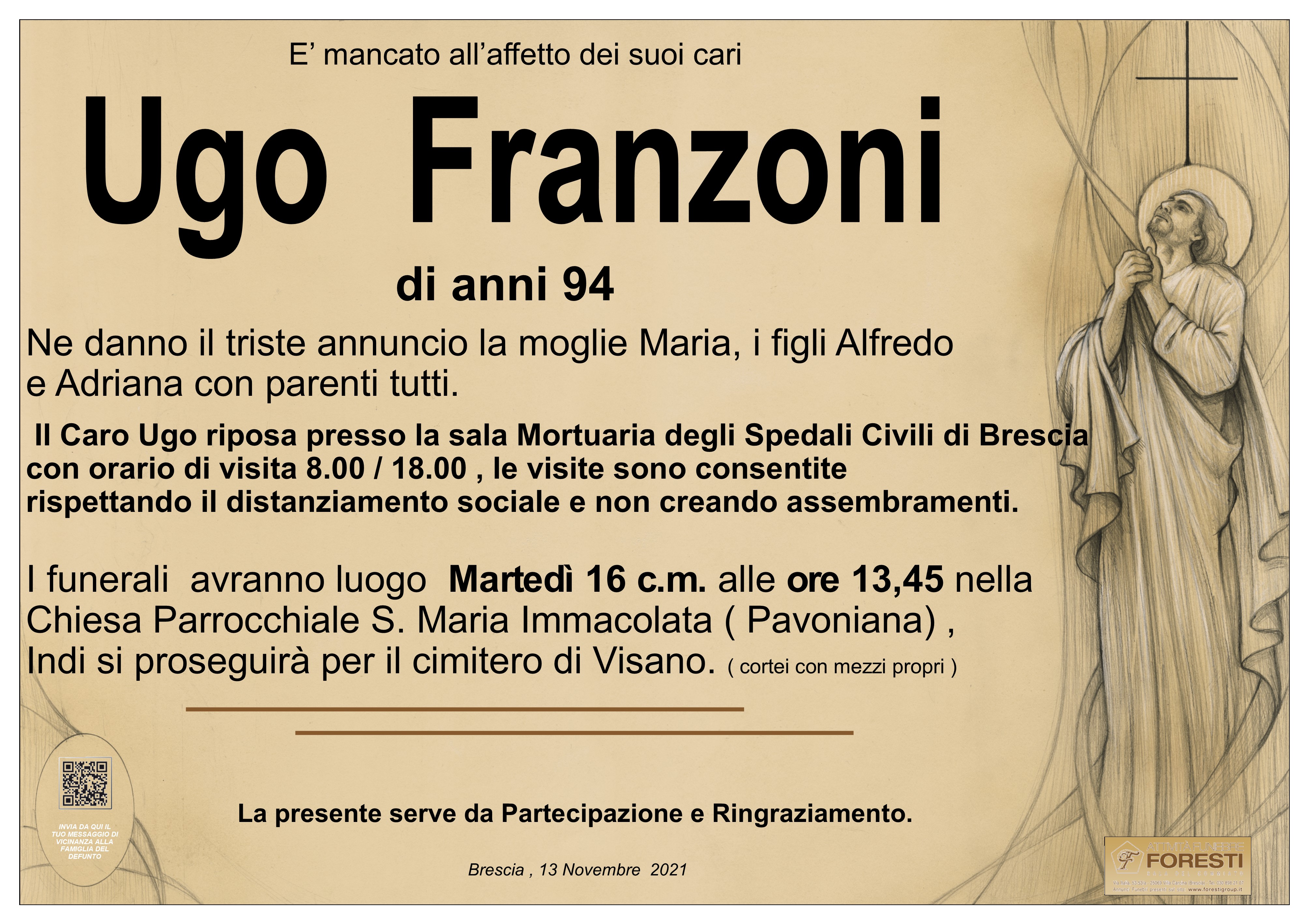 IL CARO UGO RIPOSA PRESSO LA SALA MORTUARIA DEGLI SPEDALI CIVILI DI BRESCIA CON ORARIO DI VISITA 8.00/ 18.00