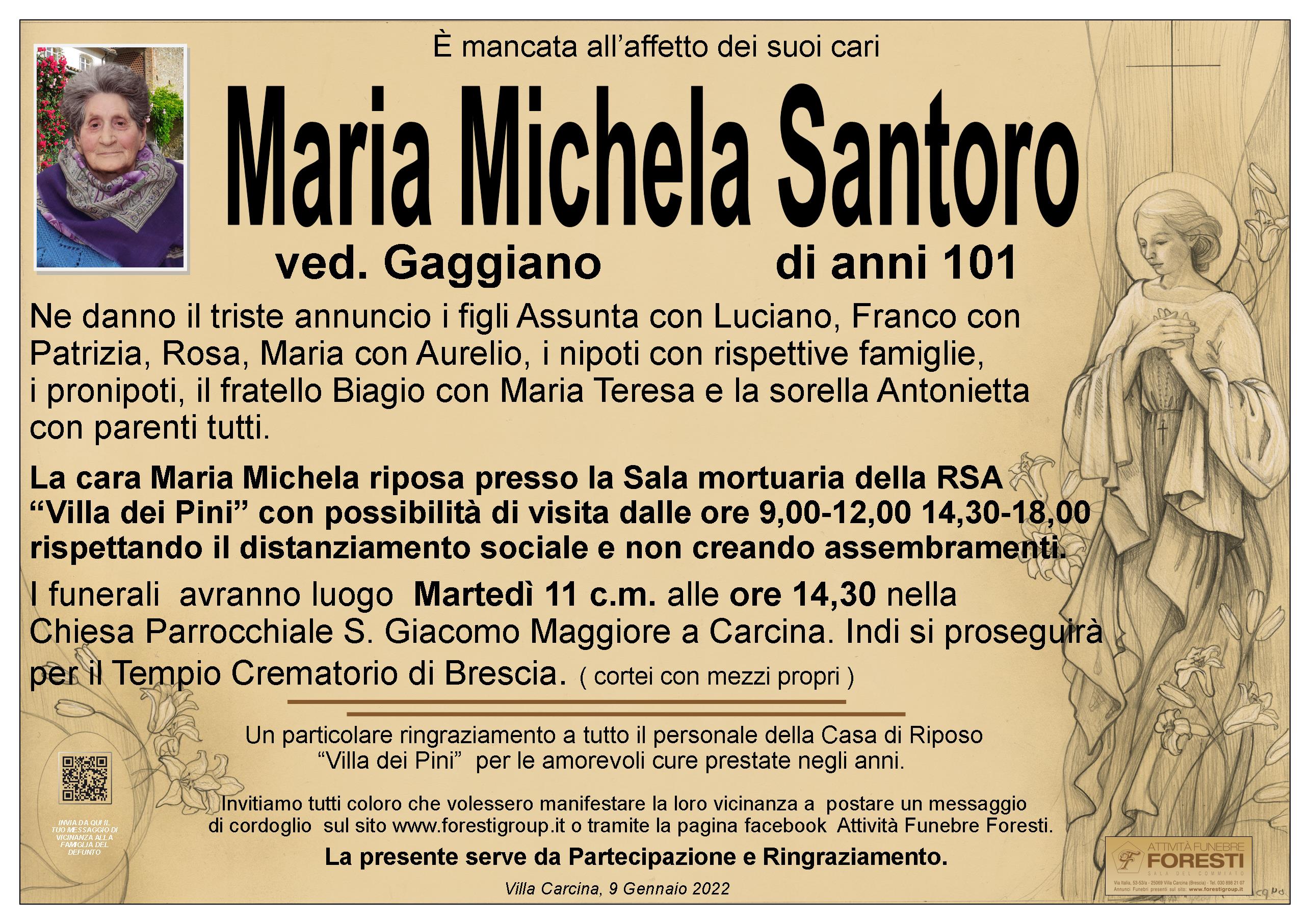 La cara Maria Michela riposa presso la Sala mortuaria della RSA “Villa dei Pini” con possibilità di visita dalle ore 9,00-12,00 14,30-18,00 rispettando il distanziamento sociale e non creando assembramenti.