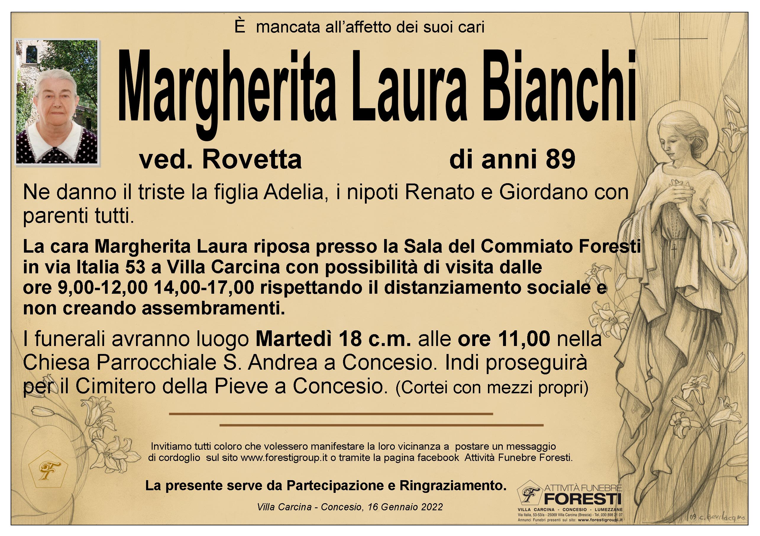 La cara Margherita Laura riposa presso la Sala del Commiato Foresti in via Italia 53 a Villa Carcina con possibilità di visita dalle ore 9,00-12,00 14,00-17,00 rispettando il distanziamento sociale e non creando assembramenti.