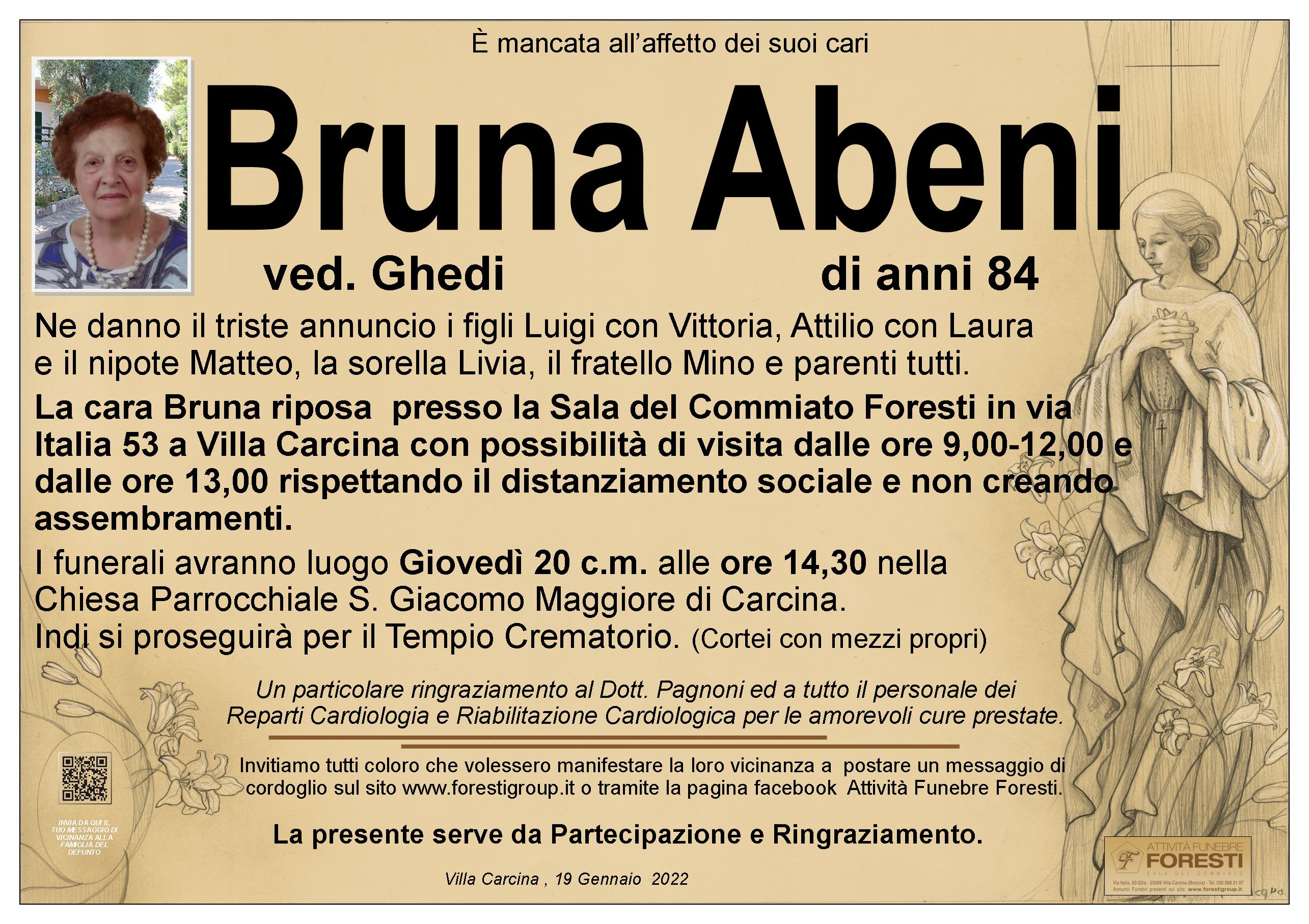 La cara Bruna riposa presso la Sala del Commiato Foresti in via Italia 53 a Villa Carcina con possibilità di visita dalle ore 9,00-12,00 e dalle ore 13,00-14,30 rispettando il distanziamento sociale e non creando assembramenti.