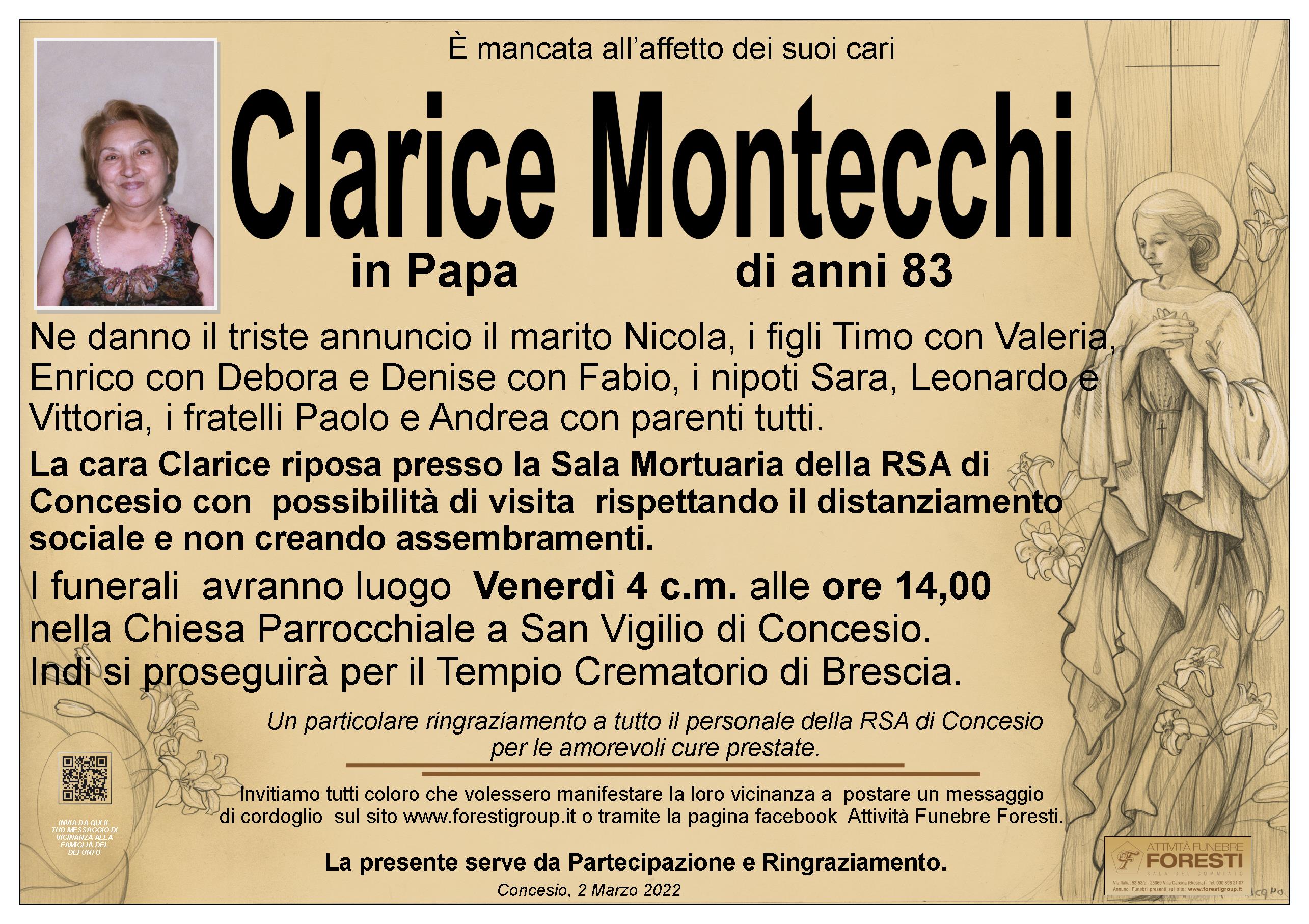 La cara Clarice riposa presso la Sala Mortuaria della RSA di Concesio con possibilità di visita rispettando il distanziamento sociale e non creando assembramenti.