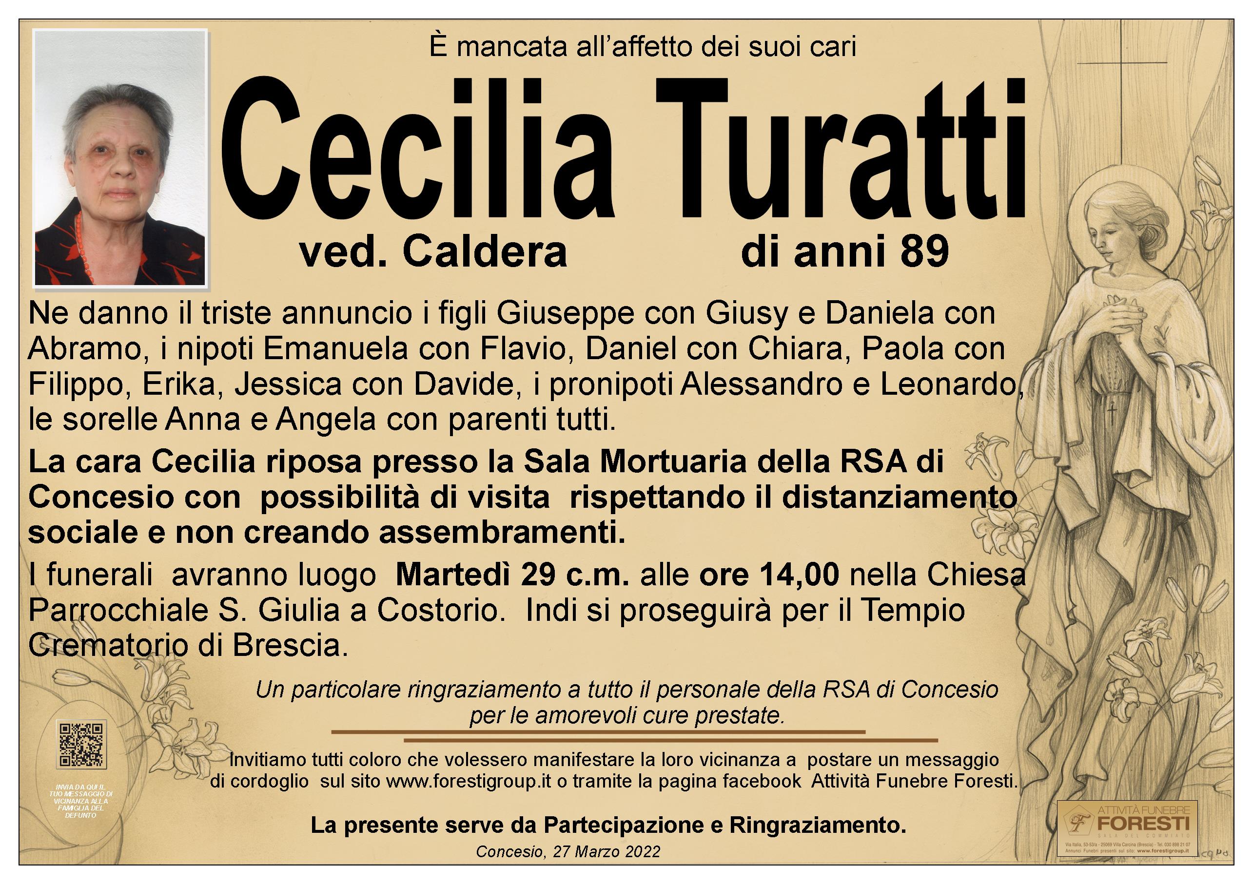 La cara Cecilia riposa presso la Sala Mortuaria della RSA di Concesio con possibilità di visita rispettando il distanziamento sociale e non creando assembramenti.