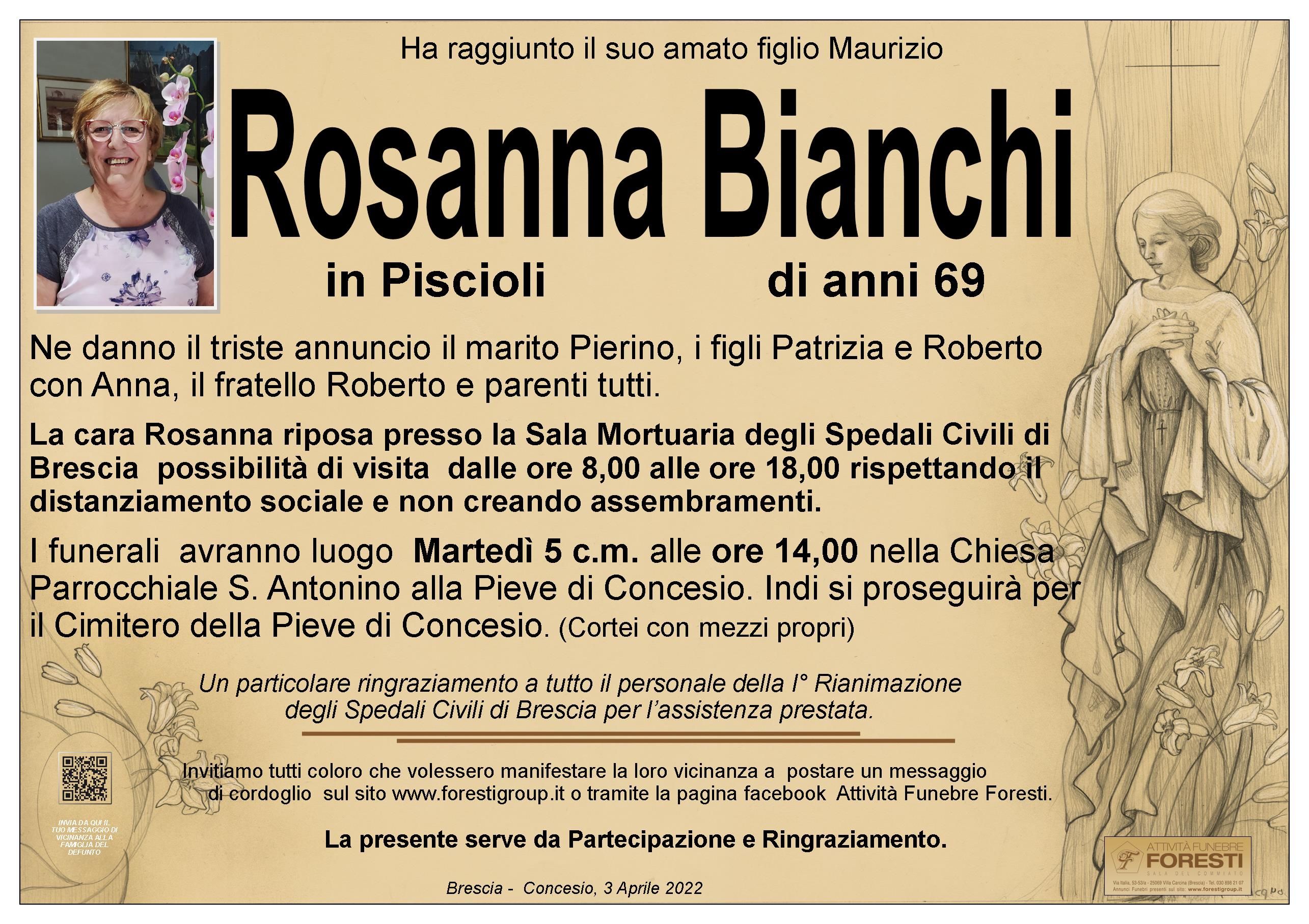 La cara Rosanna riposa presso la Sala Mortuaria degli Spedali Civili di Brescia possibilità di visita dalle ore 8,00 alle ore 18,00 rispettando il distanziamento sociale e non creando assembramenti.