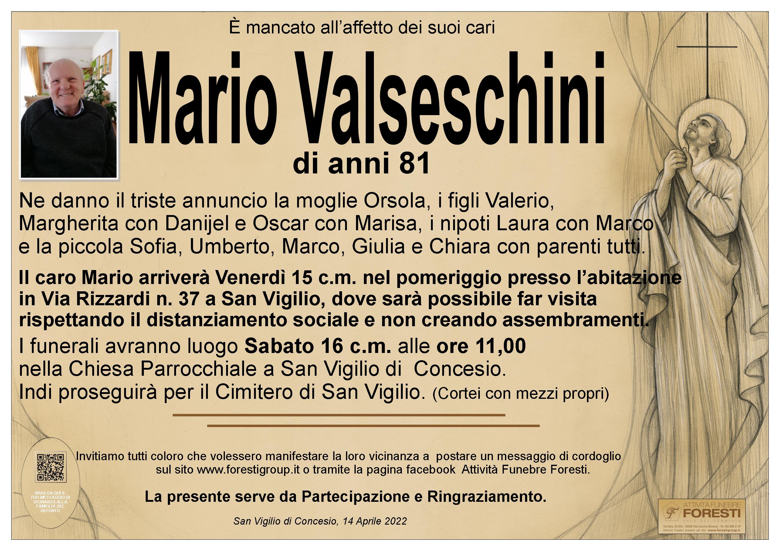 Famiglia valseschini Eugenio, con moglie Clementina e figli porgono le loro più sentite condoglianze alla famiglia per la morte del caro Mario. Lo ricordiamo sempre col sorriso e per la sua gentilezza e solarità.