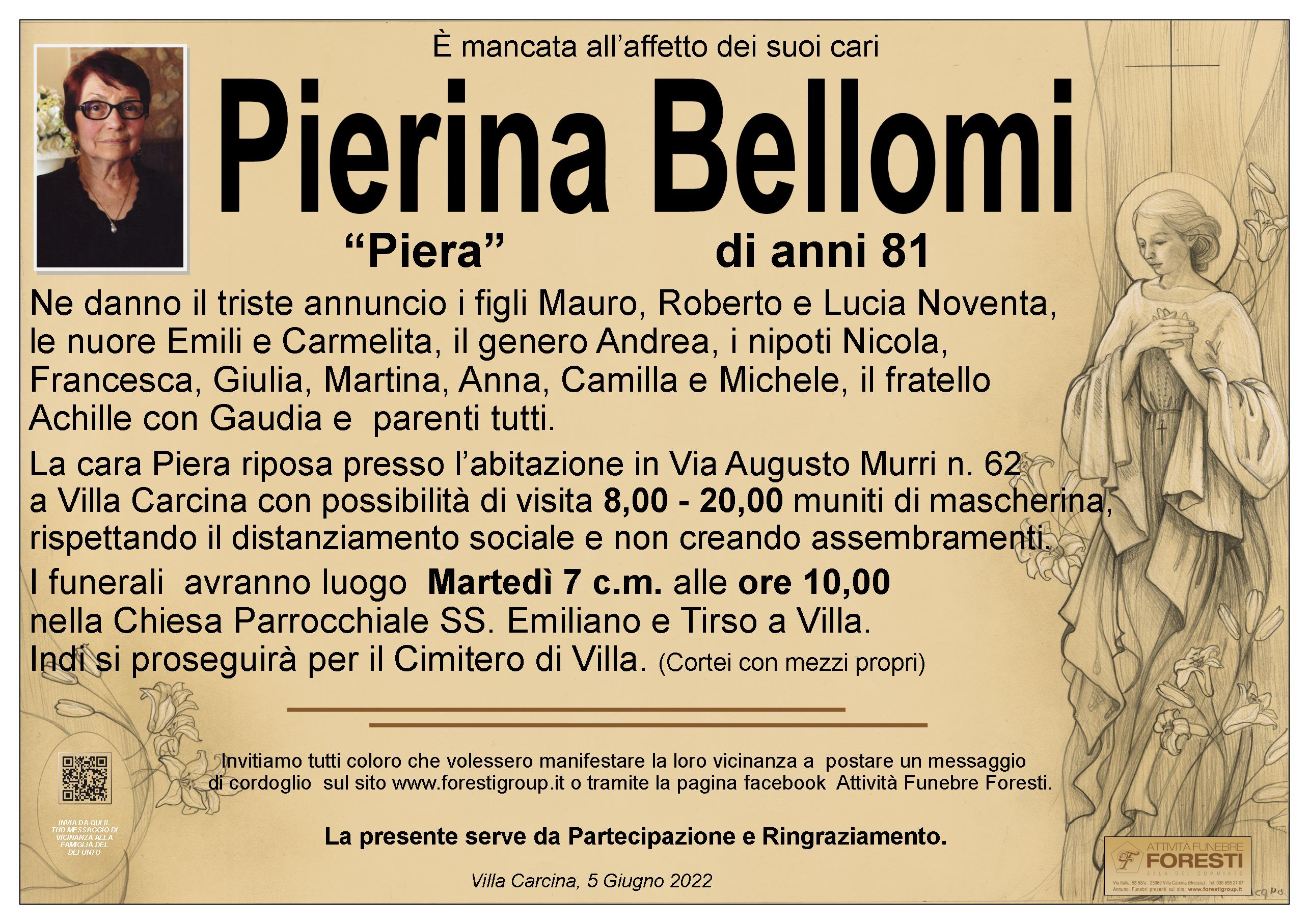 La cara Piera riposa presso l’abitazione in Via Augusto Murri n. 62 a Villa Carcina con possibilità di visita 8,00 - 20,00 muniti di mascherina, rispettando il distanziamento sociale e non creando assembramenti.