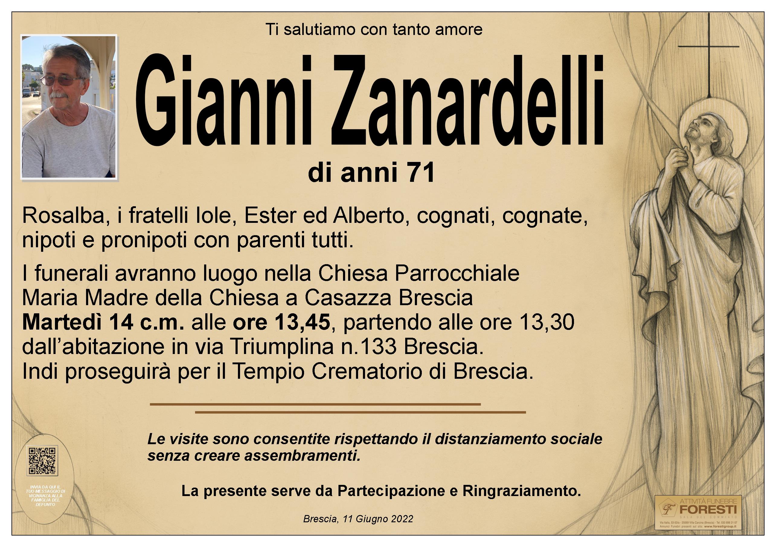 Franca e Roberto con Sergio e famiglia unitamente ai fratelli Zanardelli Piero, Gianni e Elena, porgono sentite condoglianze a Rosalba e familiari per la perdita del caro Gianni.