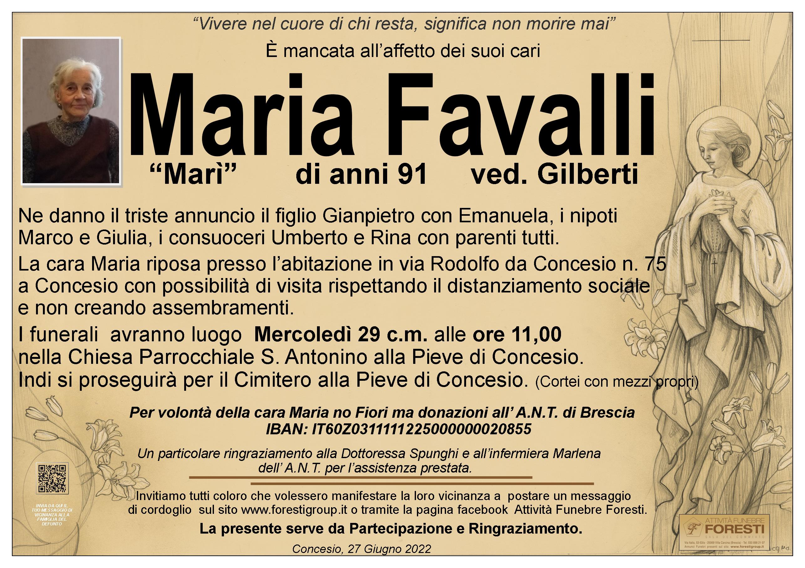 La cara Maria riposa presso l’abitazione in via Rodolfo da Concesio n. 75 a Concesio con possibilità di visita rispettando il distanziamento sociale e non creando assembramenti.