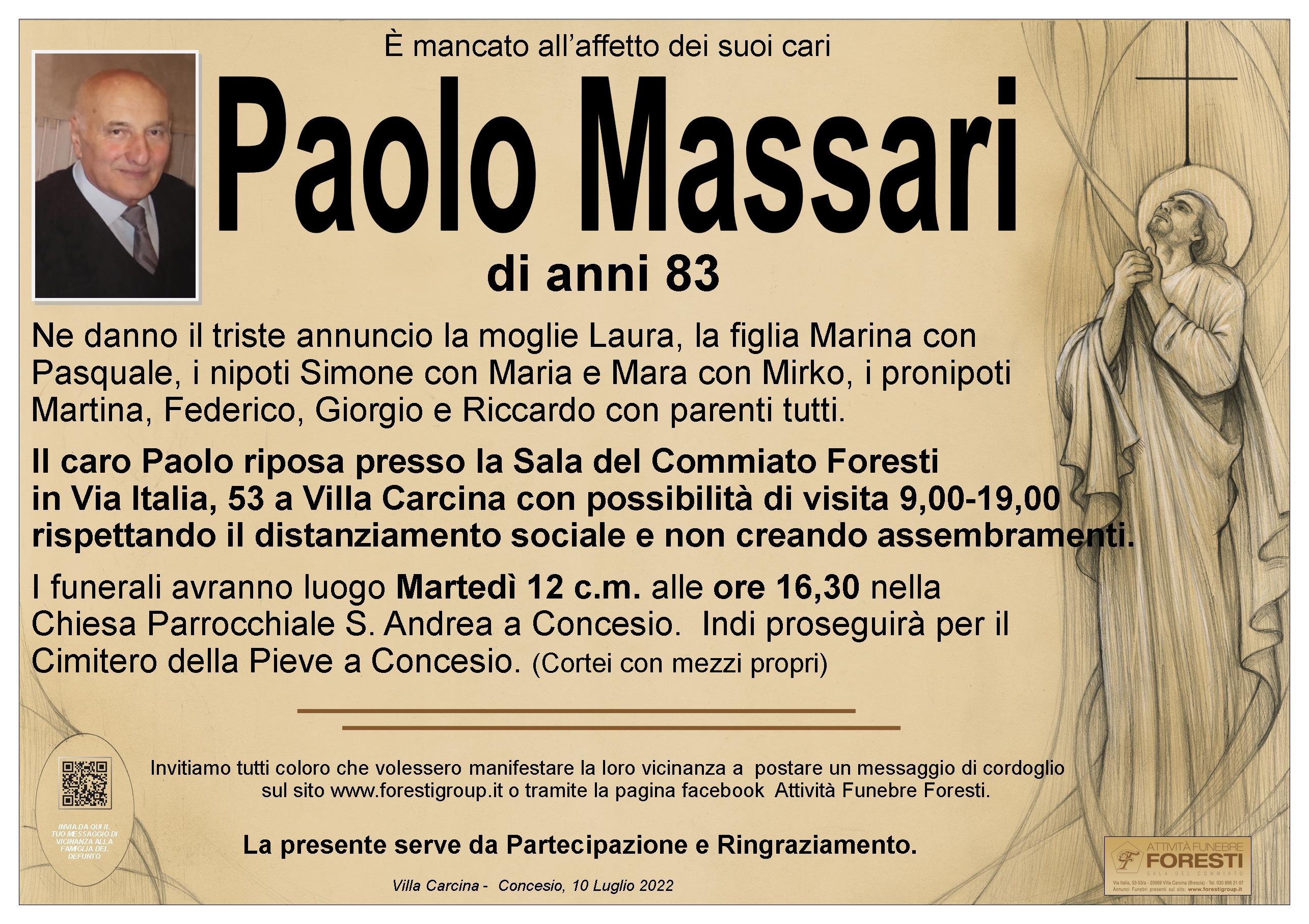 I funerali avranno luogo Martedì 12 c.m. alle ore 16,30 nella Chiesa Parrocchiale S. Andrea a Concesio. Indi proseguirà per il Cimitero della Pieve a Concesio. (Cortei con mezzi propri)