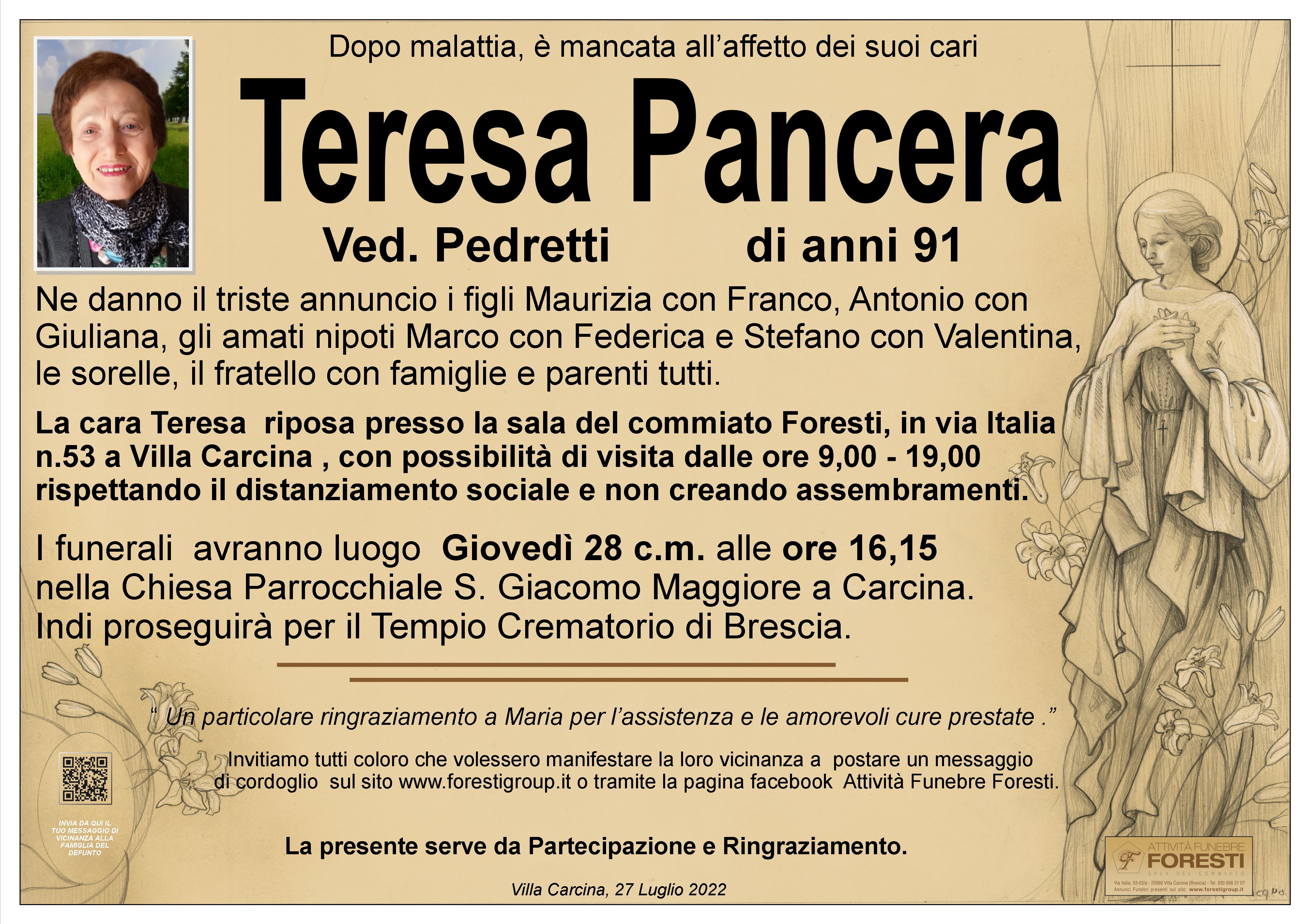 Sentite condoglianze a Maurizia, Antonio e familiari per la perdita della cara Teresa. Massimiliana Pedretti