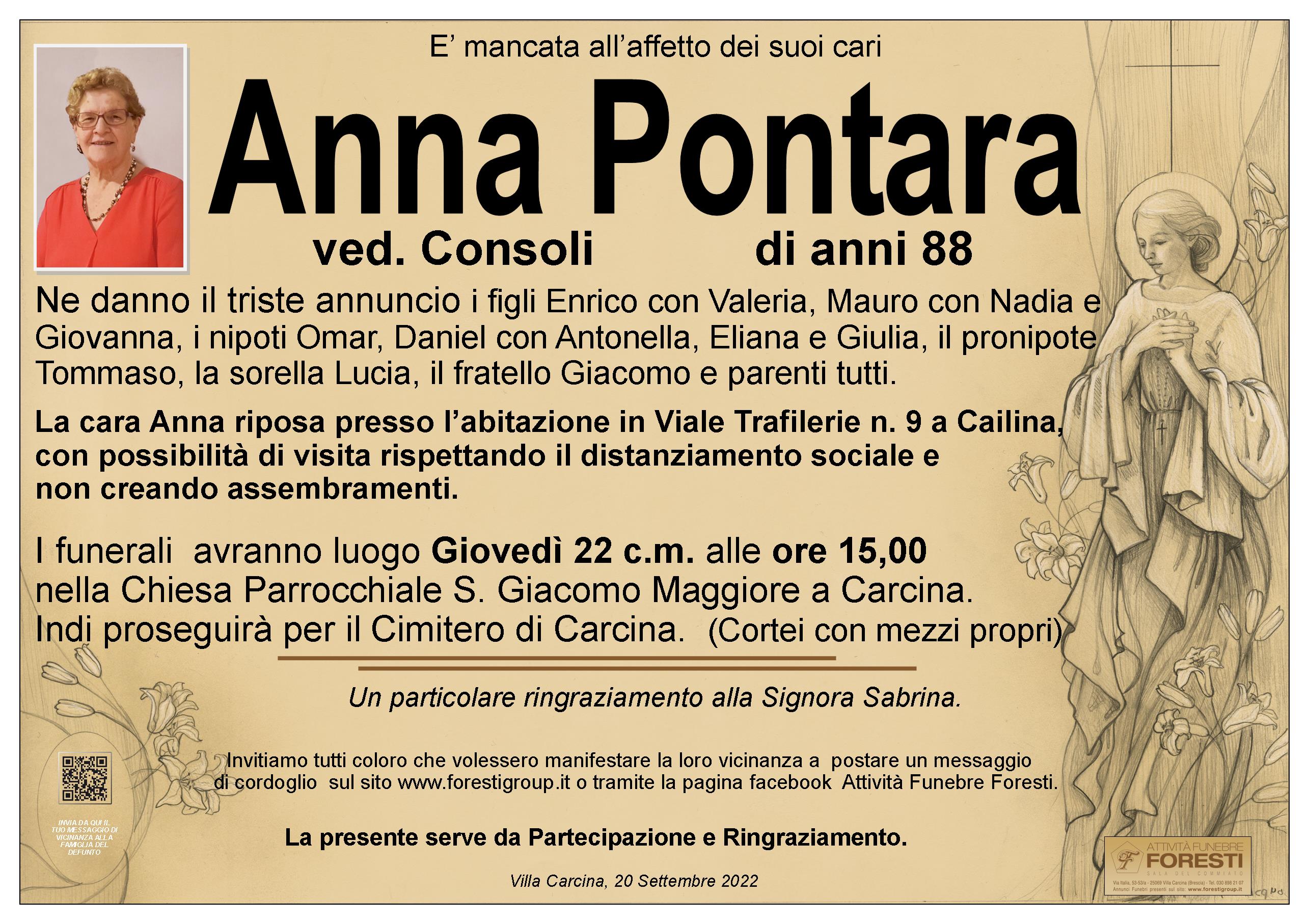 La cara Anna riposa presso l’abitazione in Viale Trafilerie n. 9 a Cailina, con possibilità di visita rispettando il distanziamento sociale e non creando assembramenti.