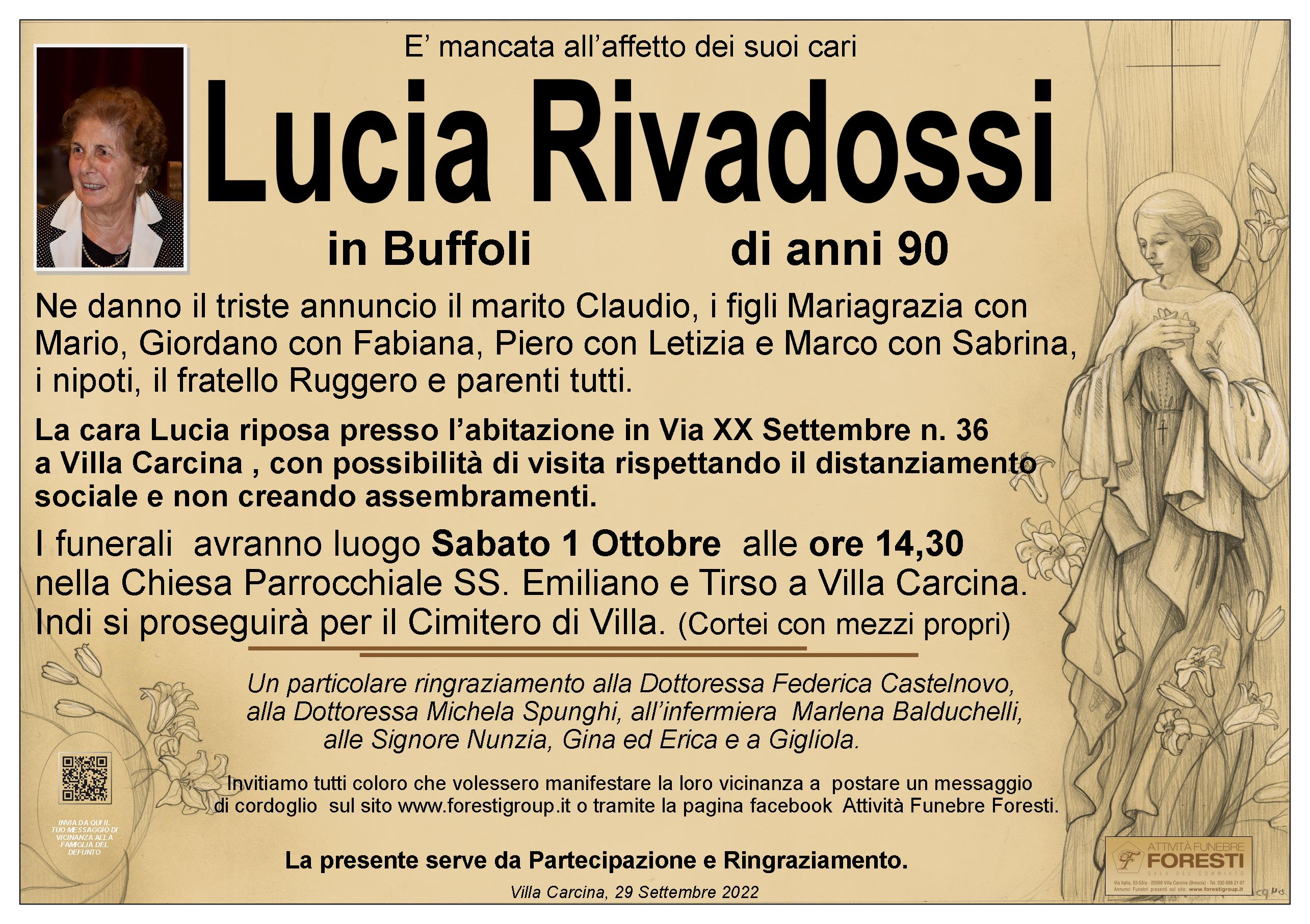 Porgiamo le nostre più sentite condoglianze al marito e figli, al fratello Ruggero e familiari tutti per la perdita della cara Lucia. Anita Rivadossi Prandelli e figlie.